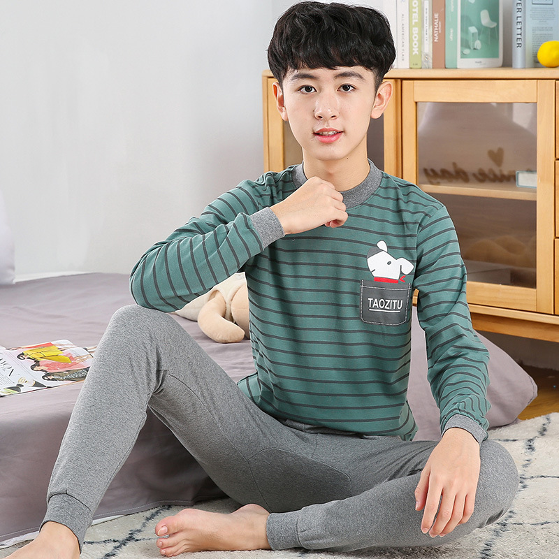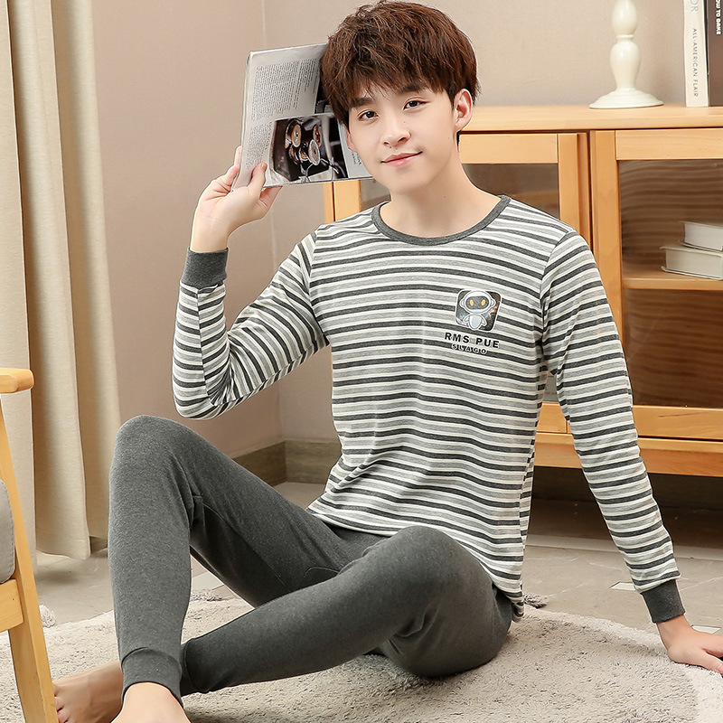 소년 가을 옷과 가을 바지 십대를위한 순수한면 열 속옷 세트 대학생베이스 면 스웨터 걸스 잠옷
