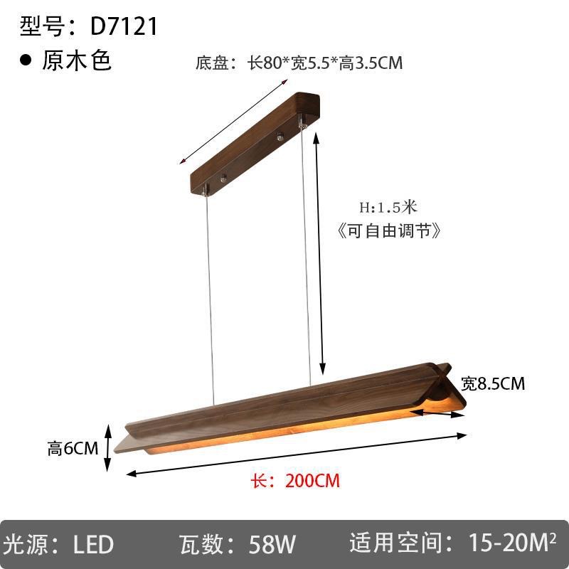북유럽 원목 스타일 심플 레스토랑 바 펜던트 램프 LED 사무실 찻집 와비사비 스타일 일본식 긴 스트립 램프 원목