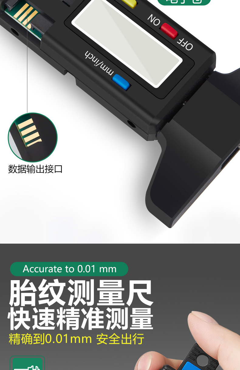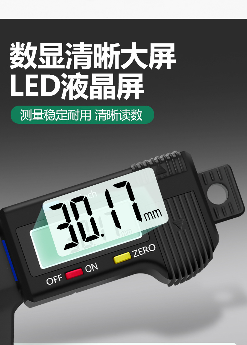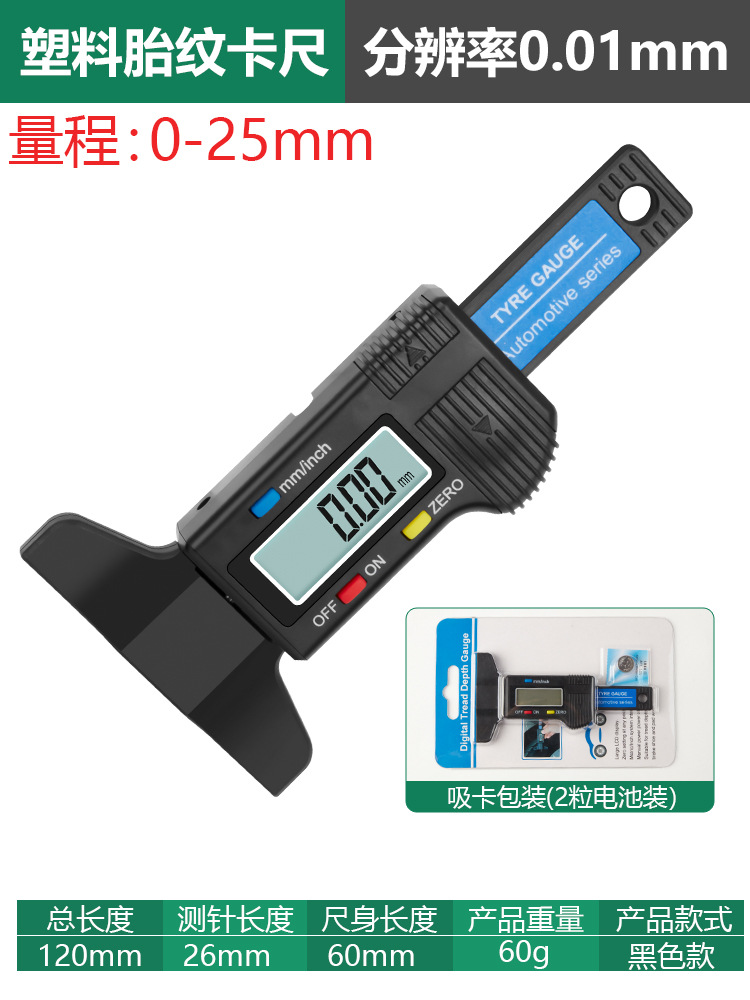 전자 디지털 디스플레이 타이어 패턴 깊이 게이지 미니 고정밀 버니어 캘리퍼 작은 타이어 두께 트레드 게이지