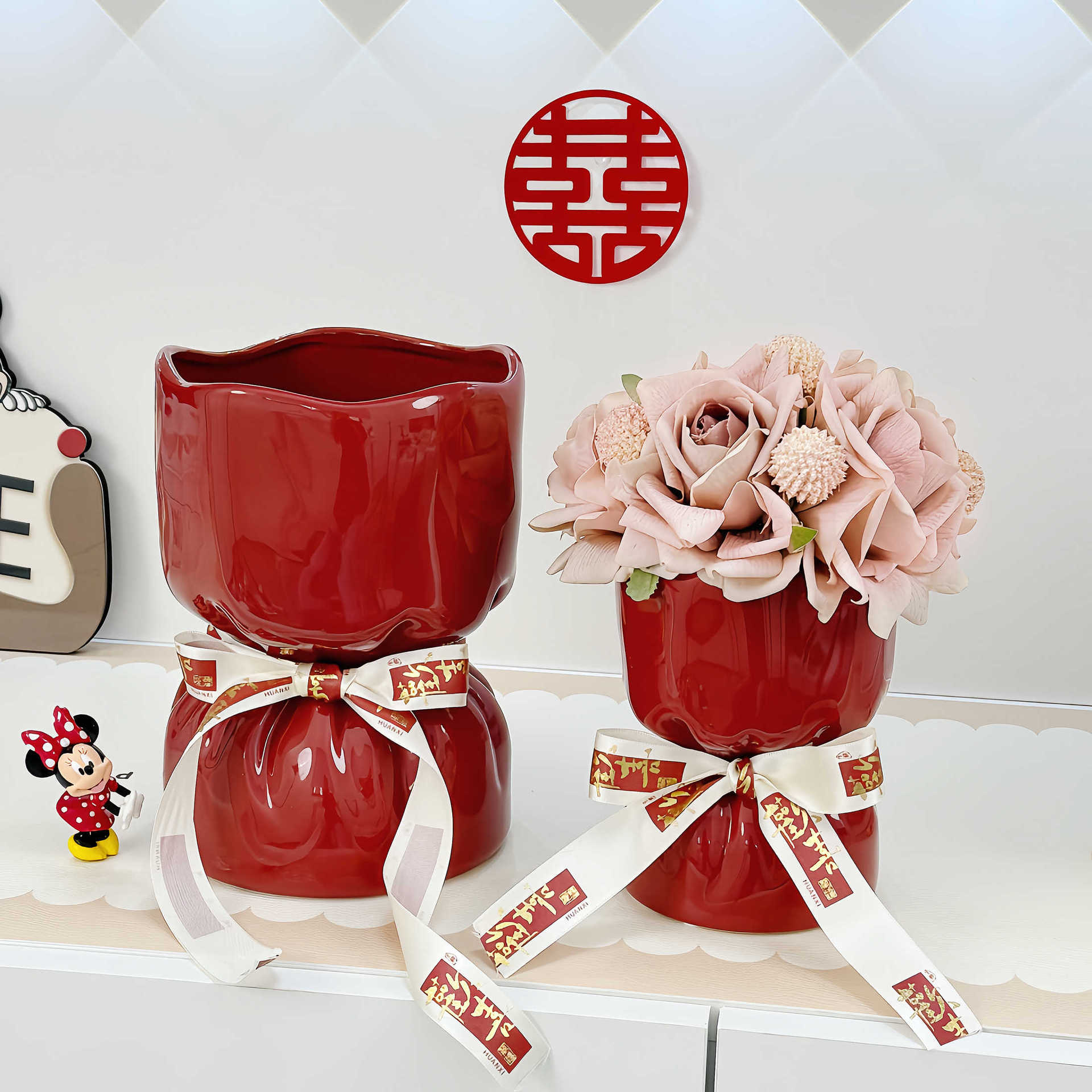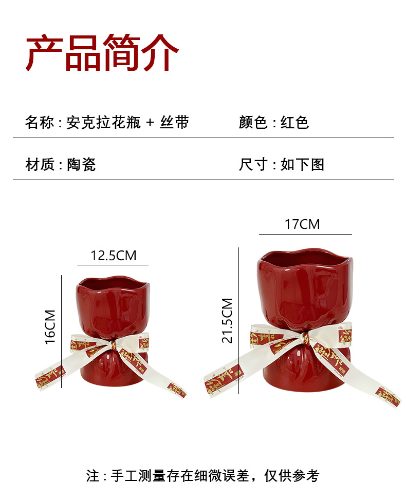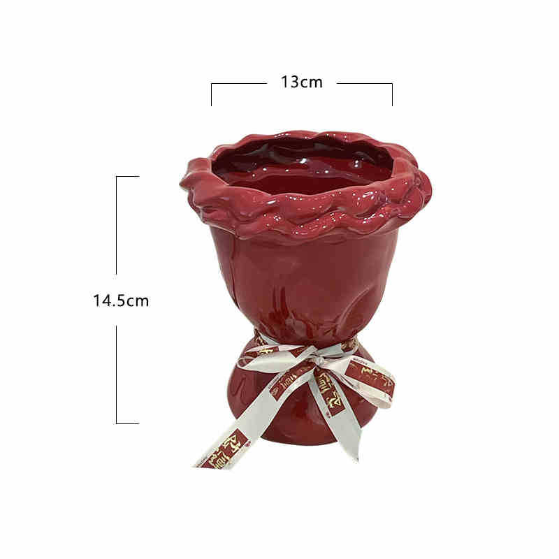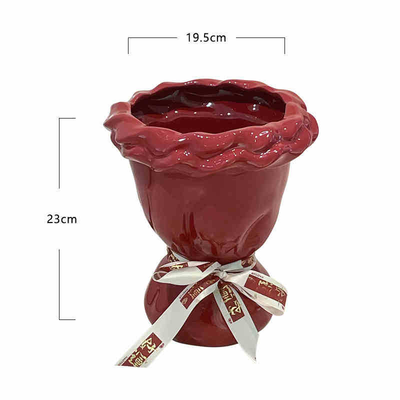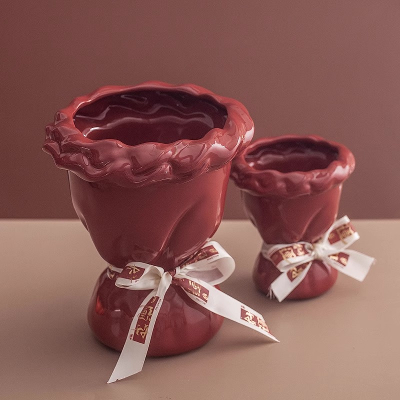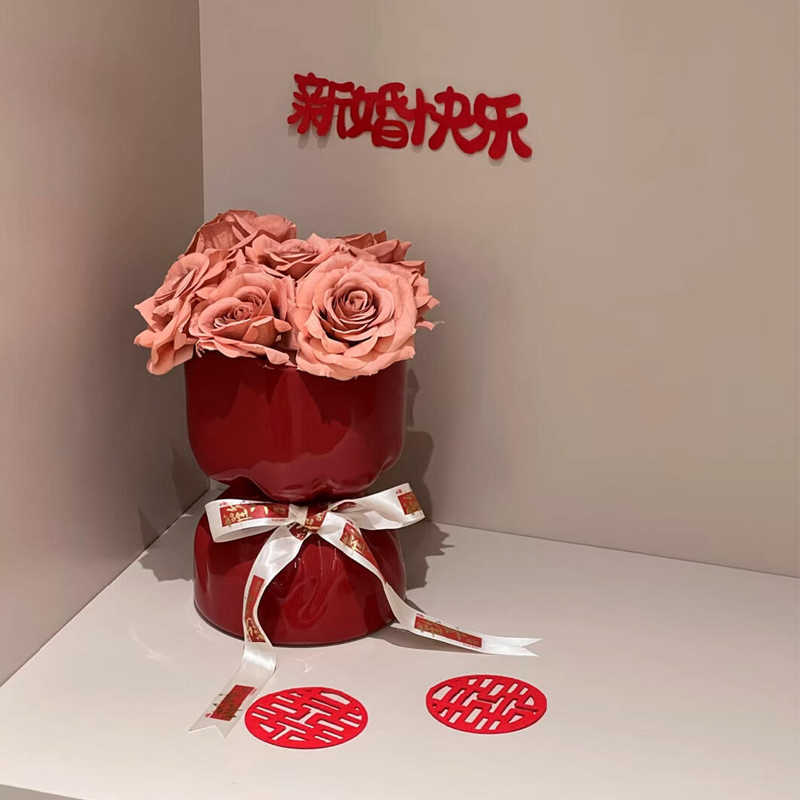 웨딩 선물 창조적 인 붉은 세라믹 꽃병 꽃꽂이 높은 수준의 거실 바탕 화면 장식 웨딩 장식품
