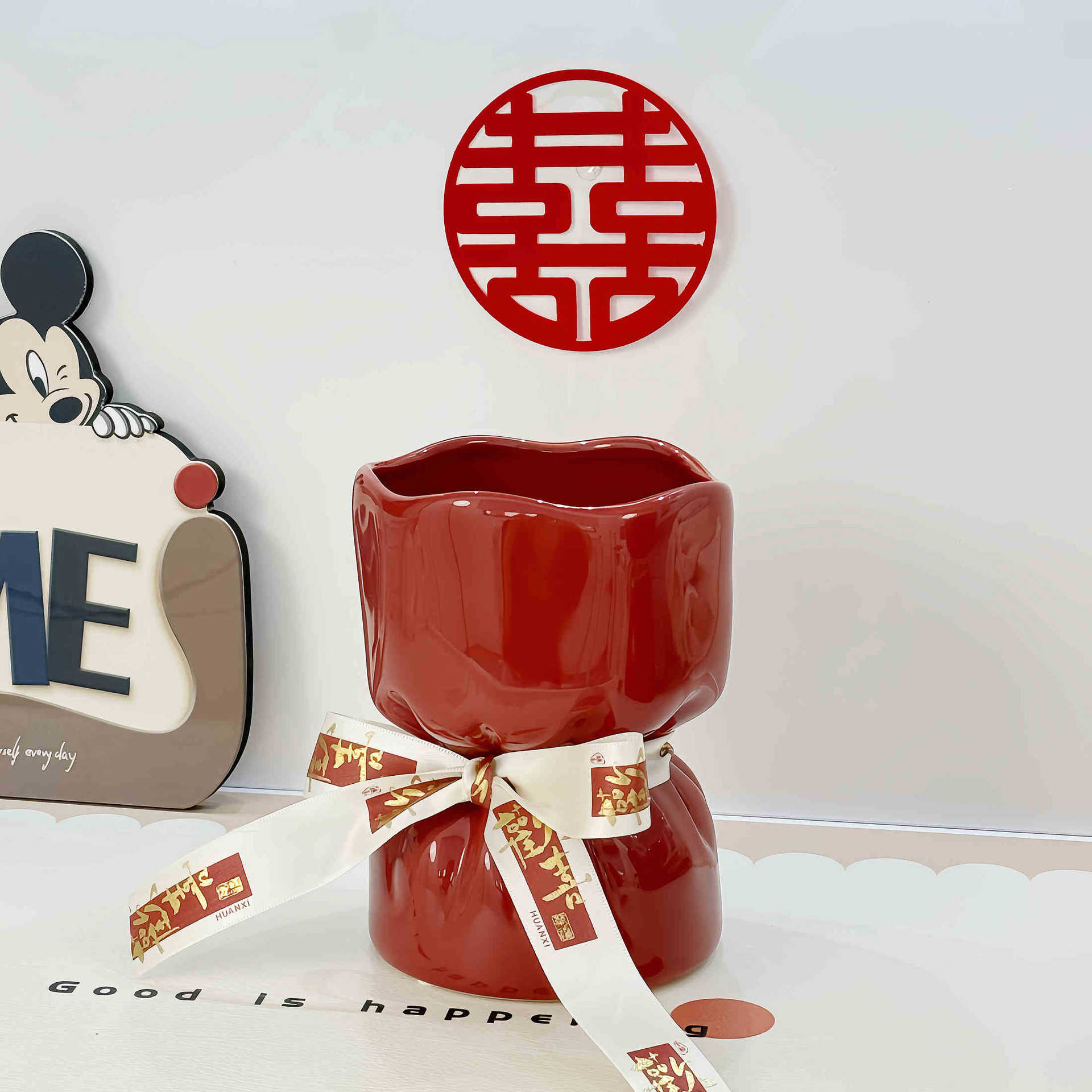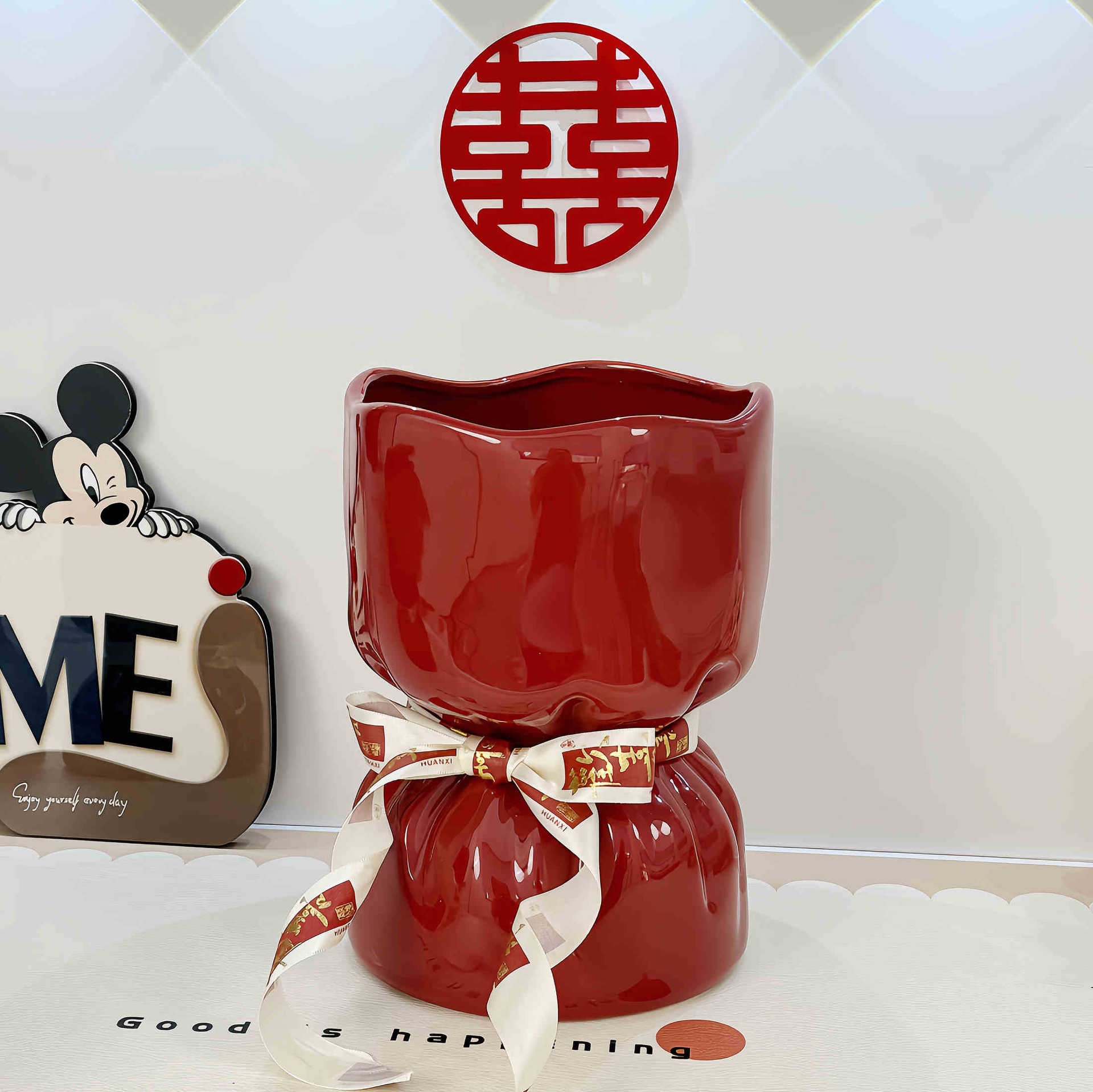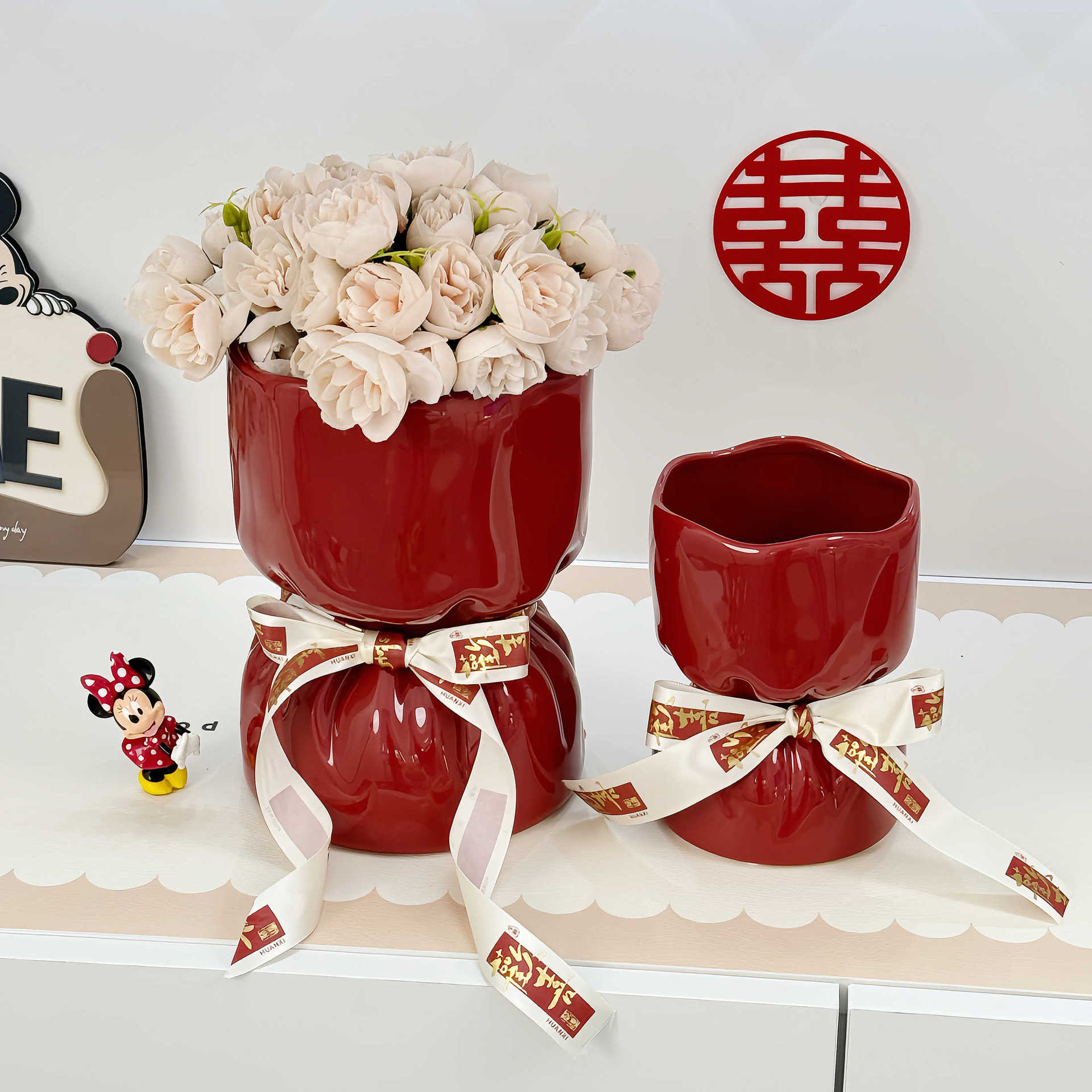 웨딩 선물 창조적 인 붉은 세라믹 꽃병 꽃꽂이 높은 수준의 거실 바탕 화면 장식 웨딩 장식품