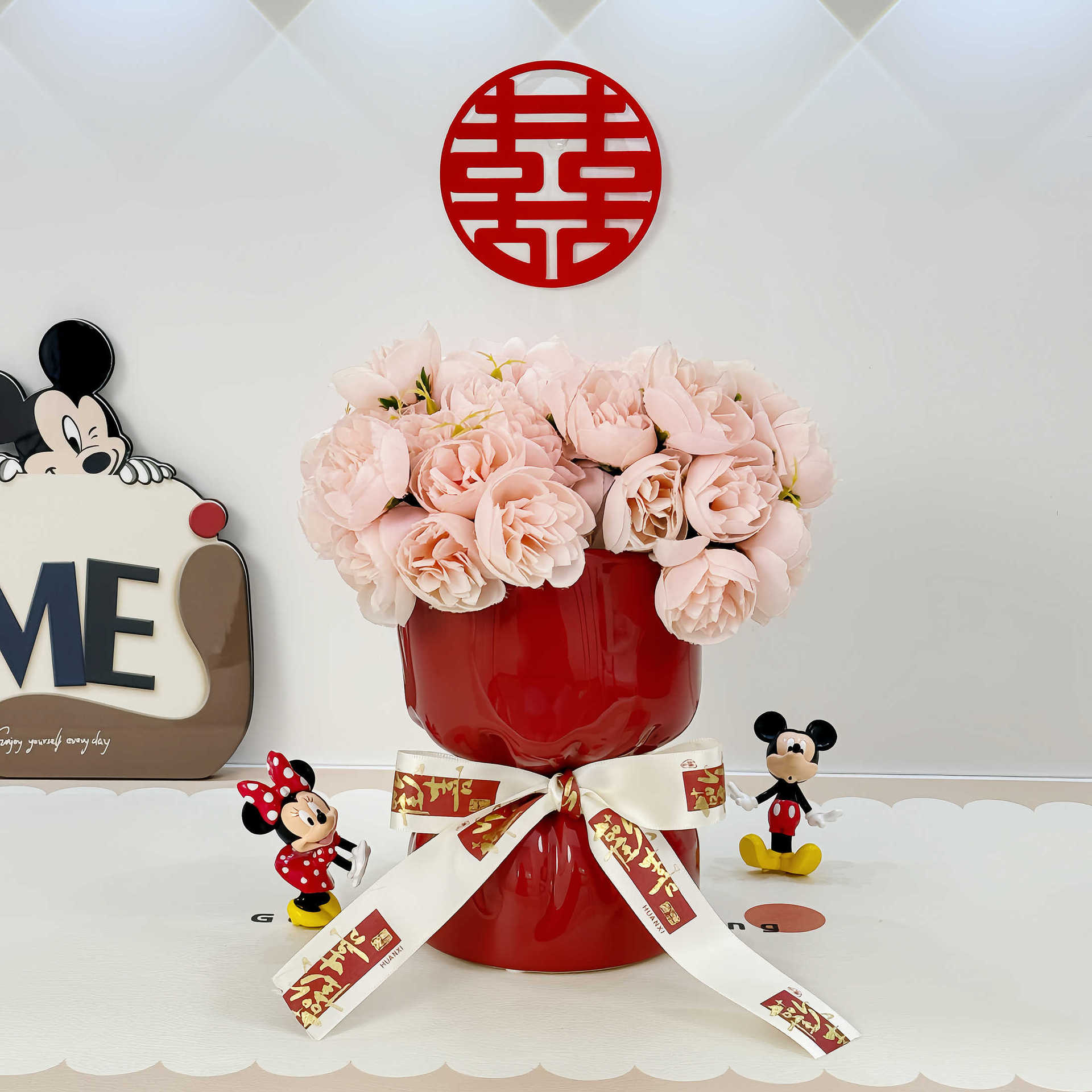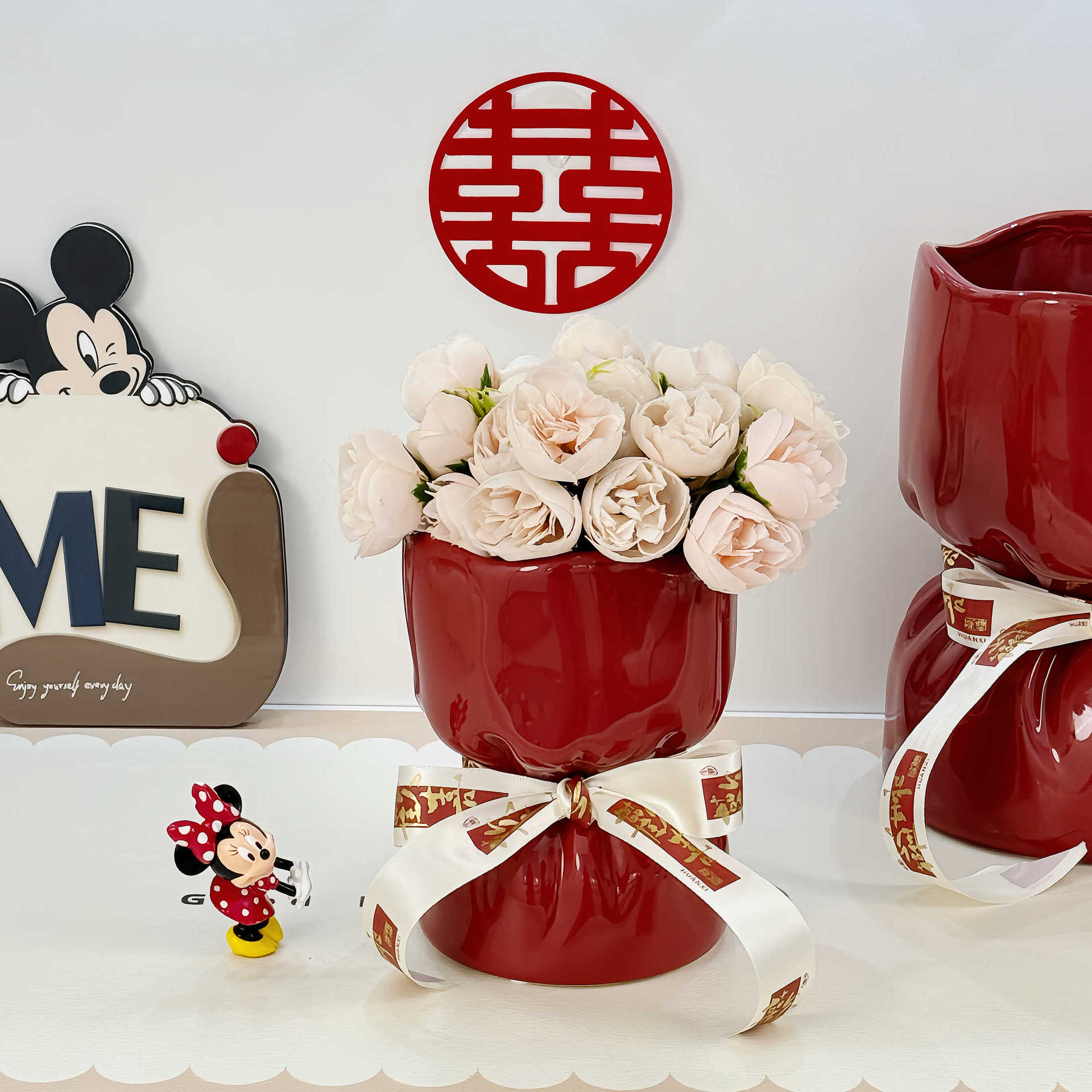웨딩 선물 창조적 인 붉은 세라믹 꽃병 꽃꽂이 높은 수준의 거실 바탕 화면 장식 웨딩 장식품스토어 가기