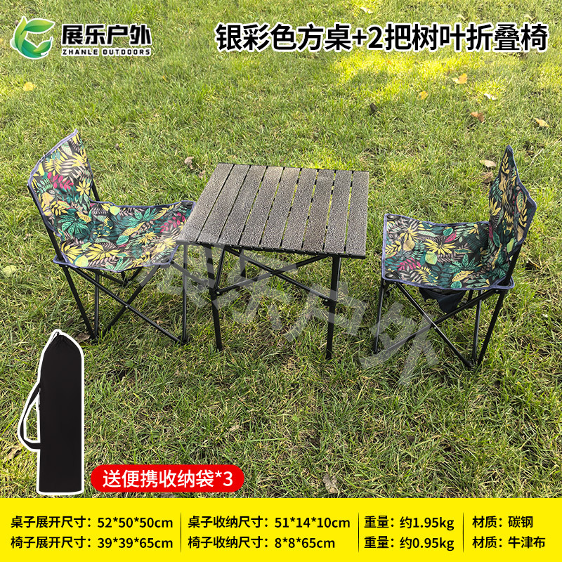 • 실버 컬러의 사각 테이블 + 단풍잎 접이식 의자 2개
