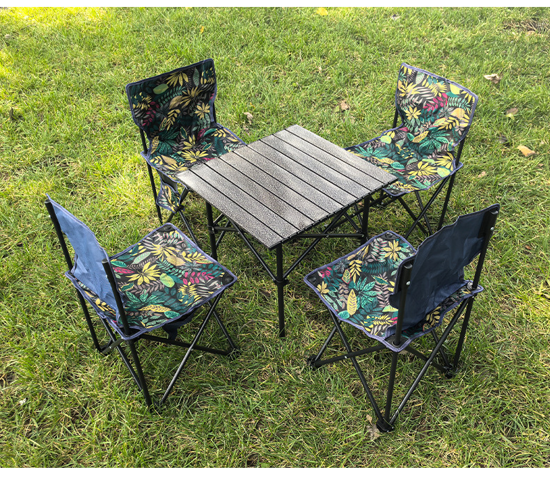 야외 실버 컬러 접이식 테이블 접이식 의자 세트 캠핑 접이식 테이블 야시장 테이블 캠핑 접이식 계란 롤 식탁