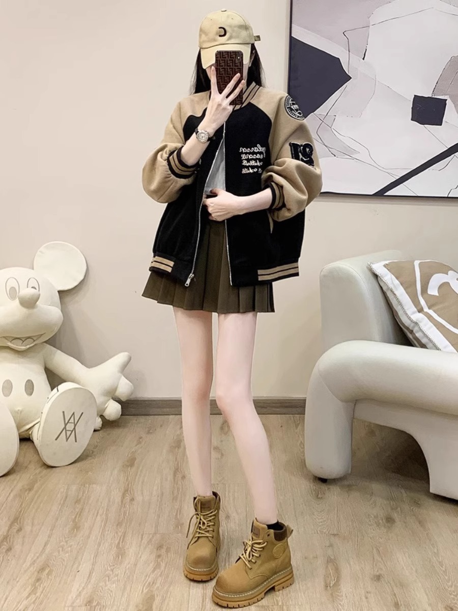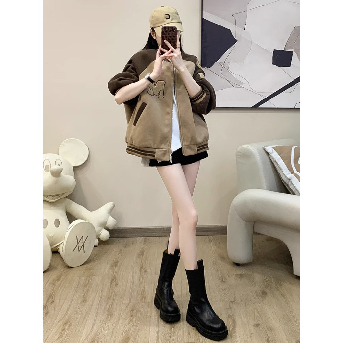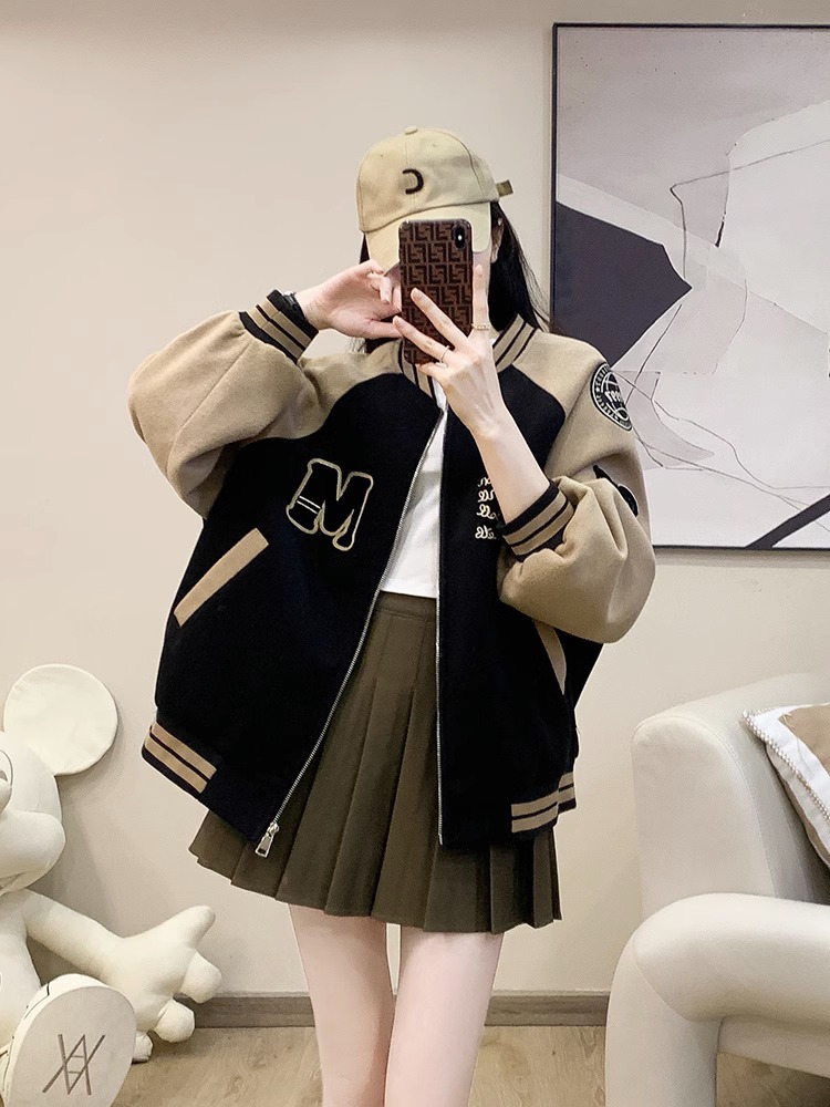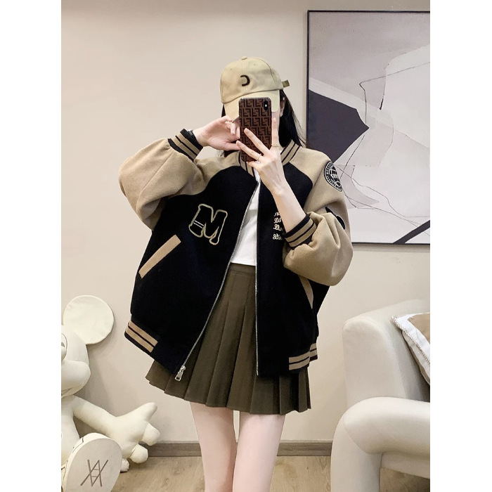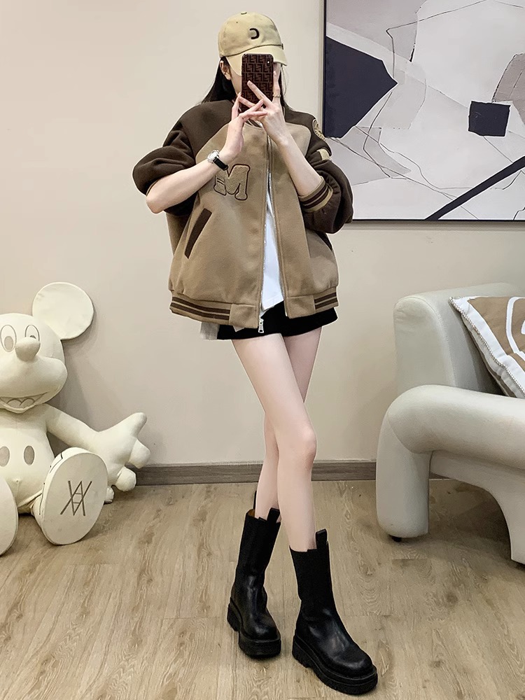 (모조 면 및 중국 복합) 플러스 사이즈 여자 봄과 가을 통통녀 느슨한 야구 세트 재킷 통통녀 2-300스토어 가기