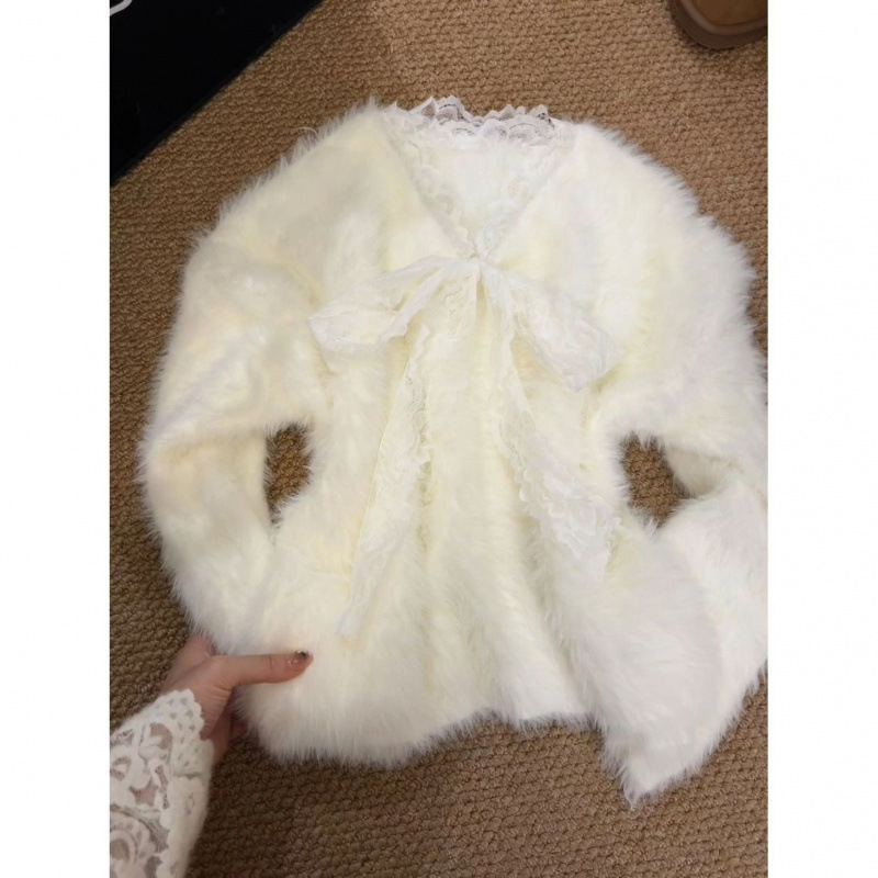 가을과 겨울 새로운 유럽 고급 소프트 여성 레이스 칼라 니트 탑 소프트 왁스 밀크 스웨터 조수스토어 가기
