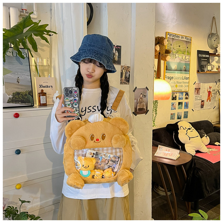 겨울 신상 곰돌이 플러시 백 편안한 백팩 학생 가방 어린이용 2차원 백팩 여성용 가방스토어 가기