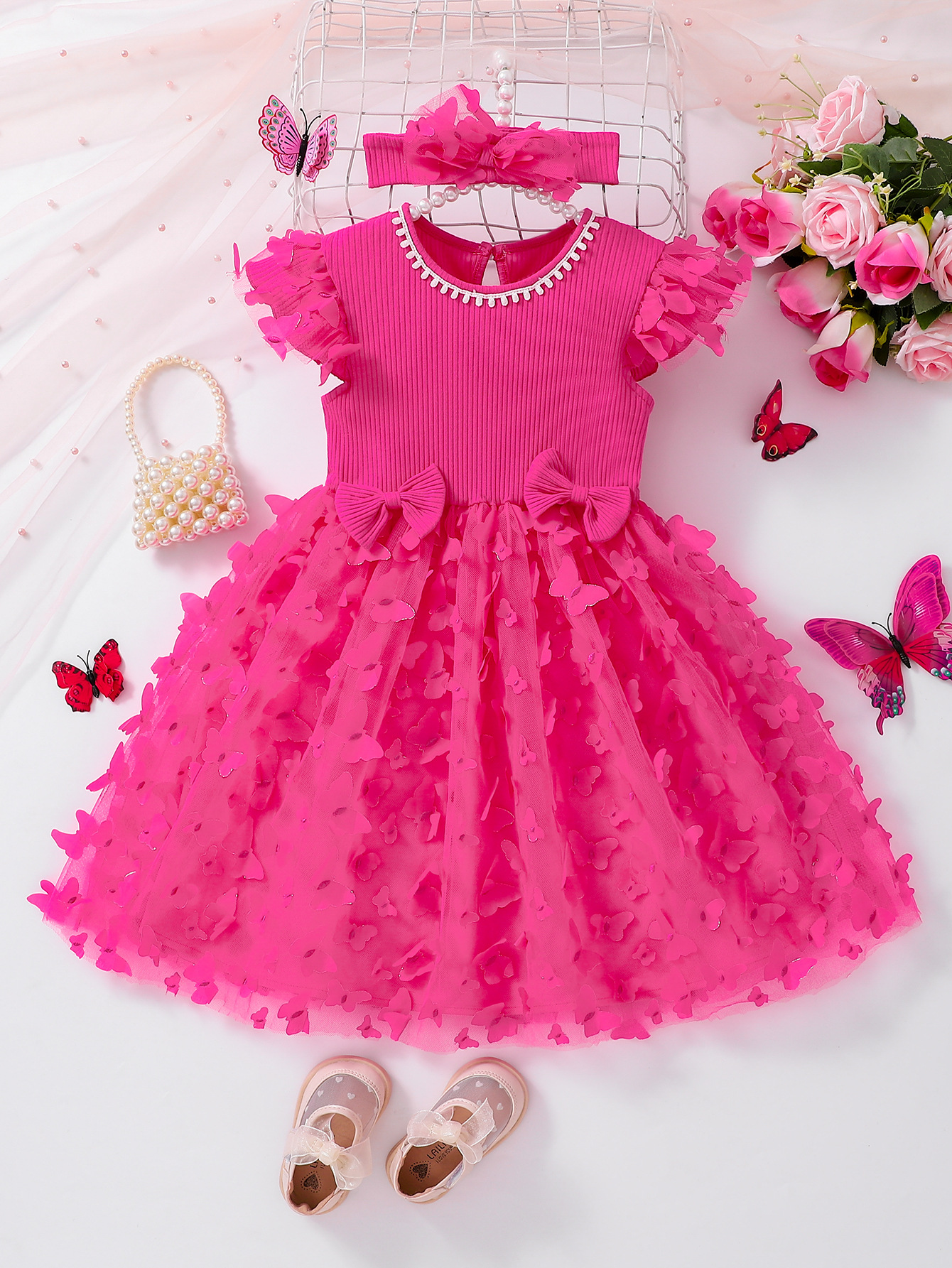 소녀 새로운 활 메쉬 원피스스토어 가기