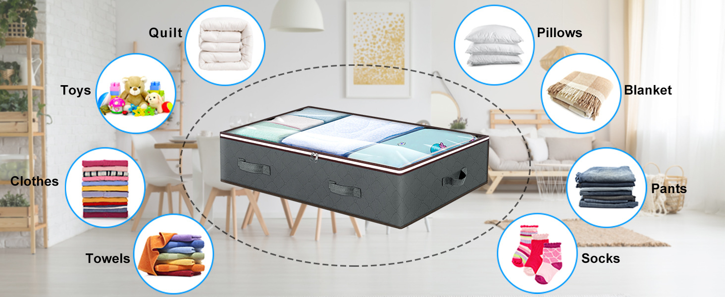 90L 침대 아래 보관 컨테이너 옷장 보관 상자 접이식 침대 아래 보관 가방 담요 수건 이불에 적합