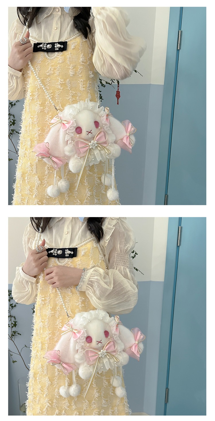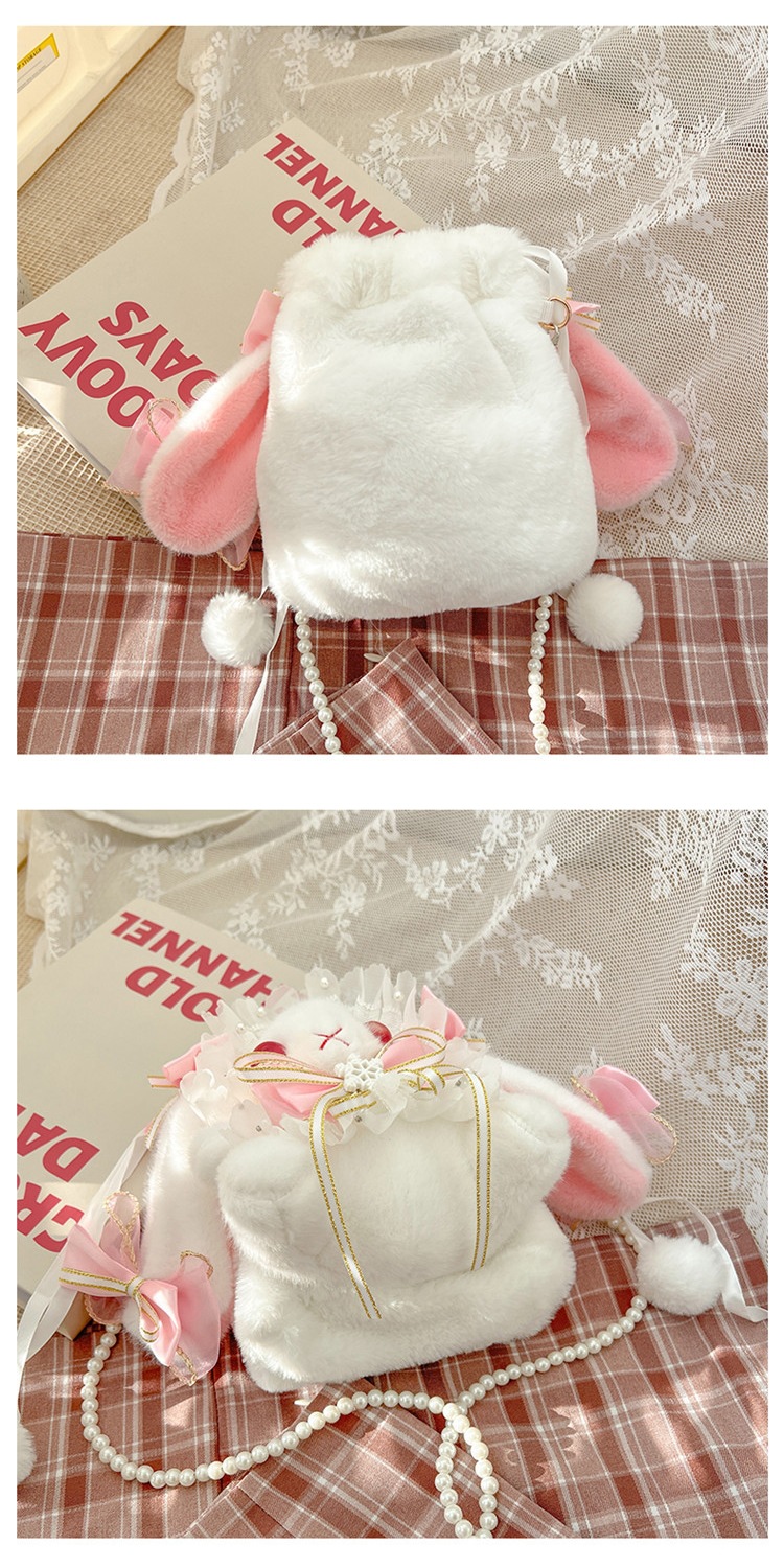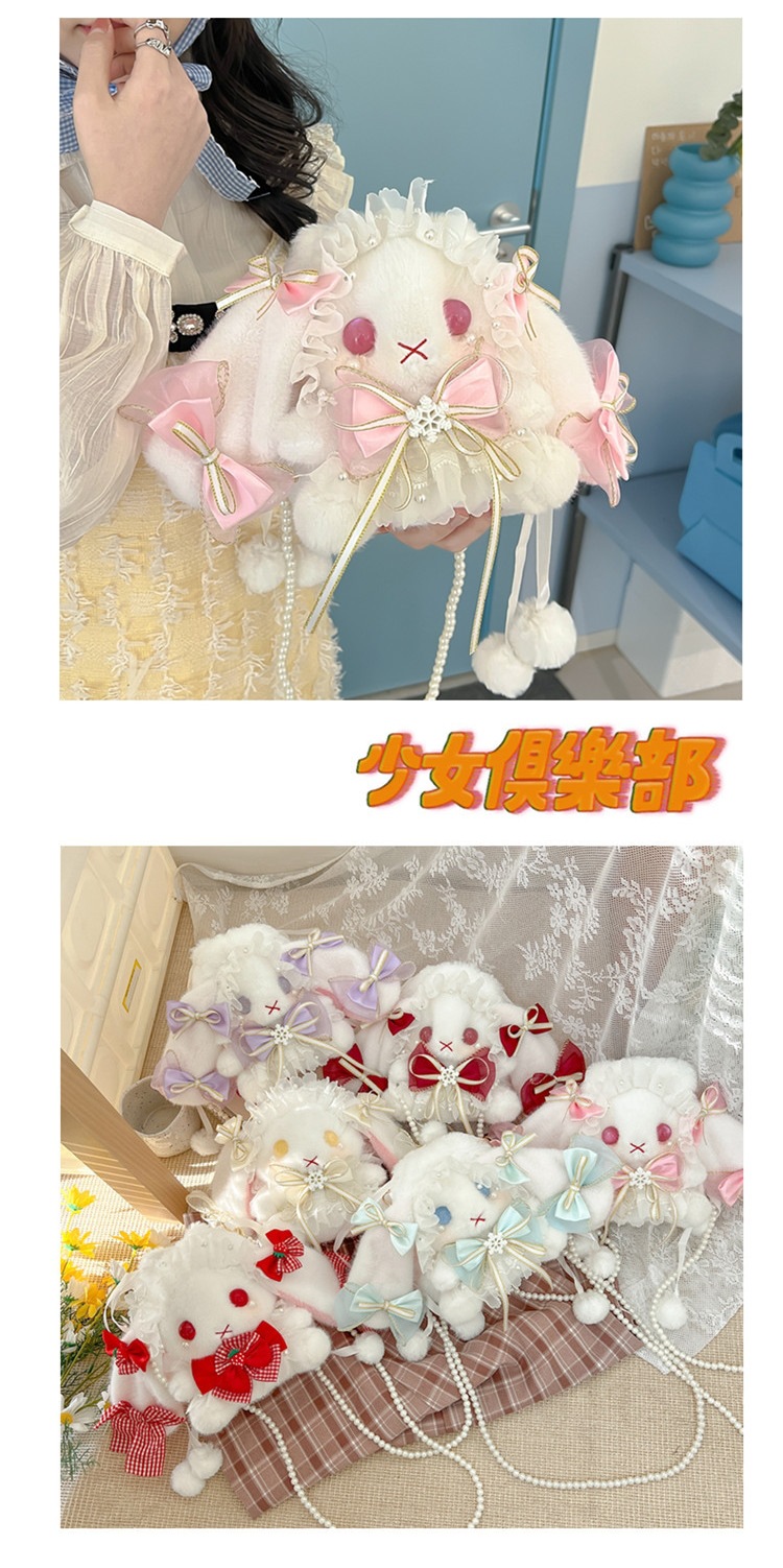 공주 소녀의 로리타 토끼 가방 봉제 귀 토끼 활 작은 가방 어깨 크로스 바디 가방