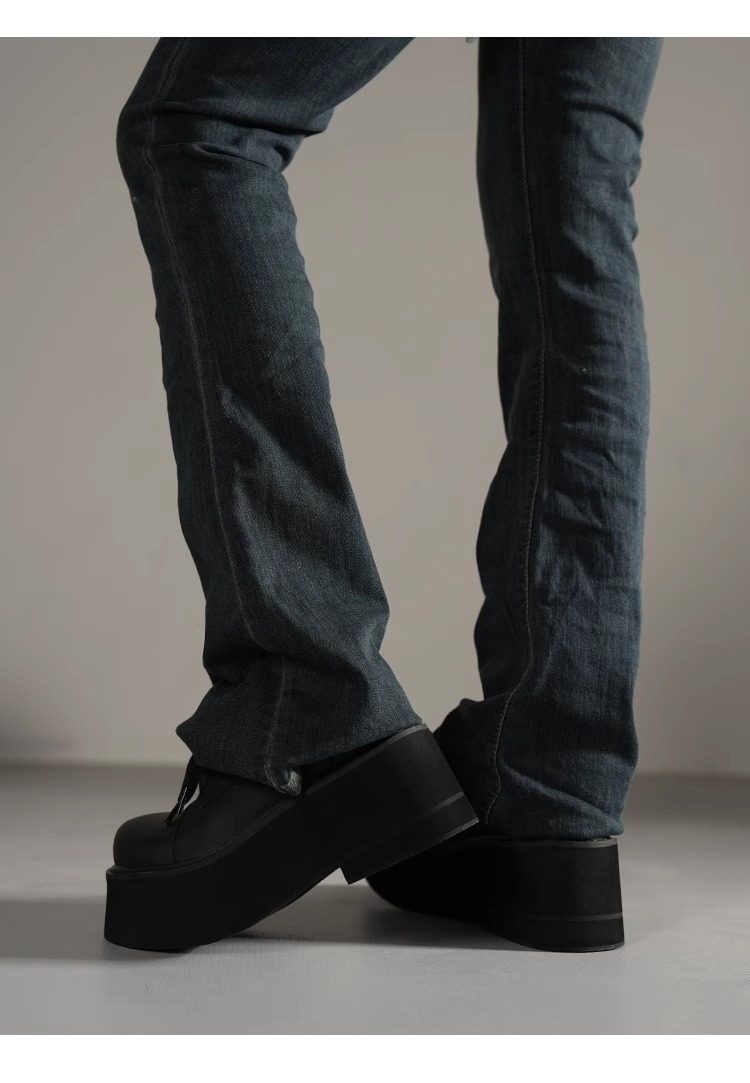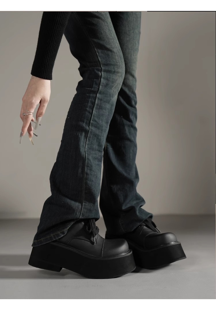 Cowhide 버전 ~ 가죽 머핀 슈퍼 두꺼운 바닥 작은 가죽 신발 새로운 다목적 레이스 업 유럽 역 시원한 신발 큰 발가락 신발