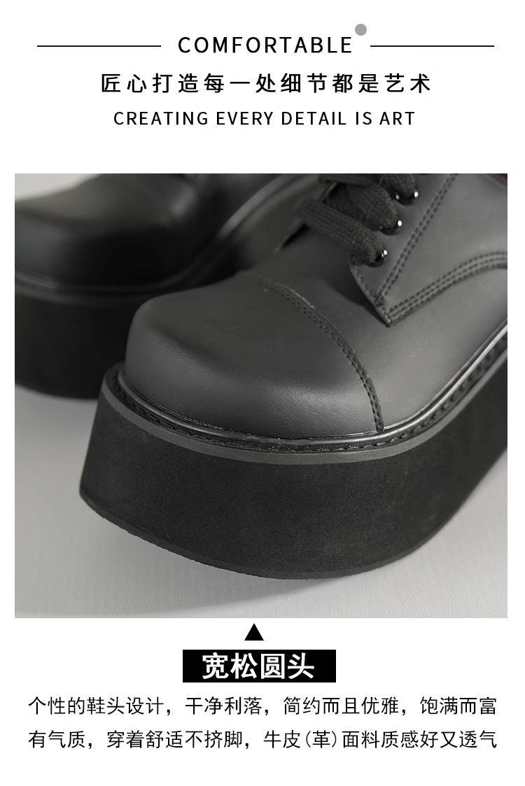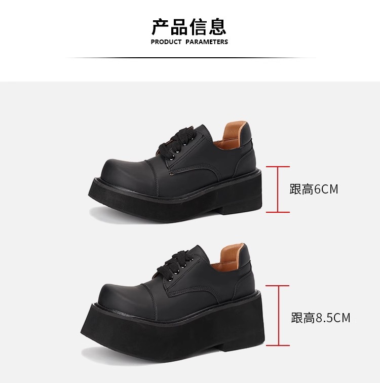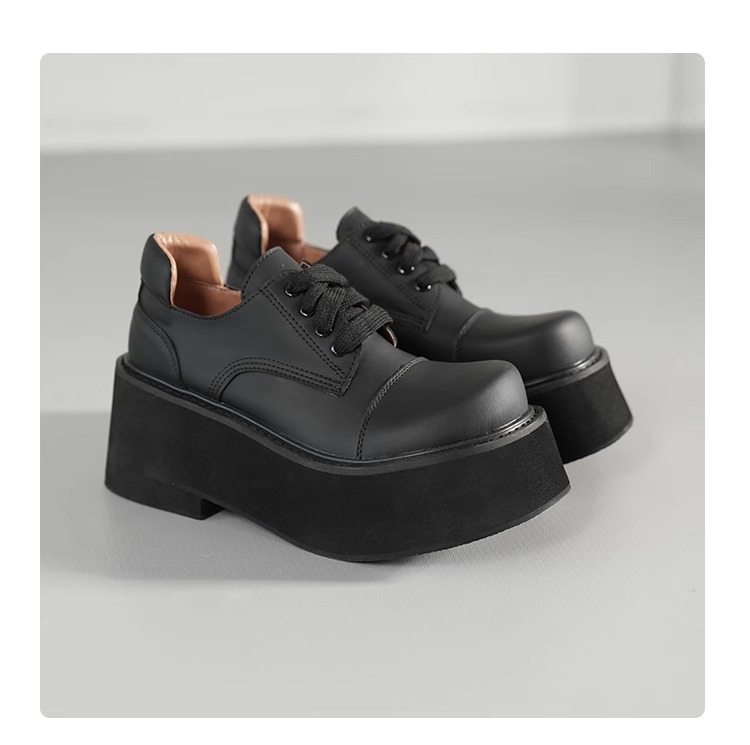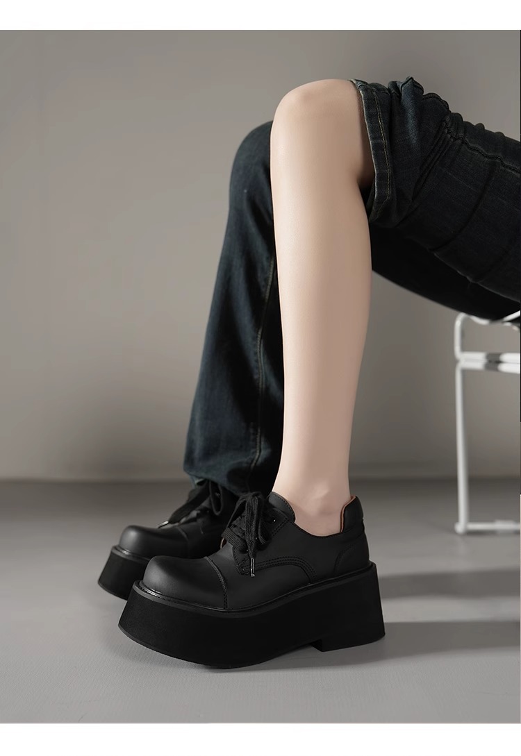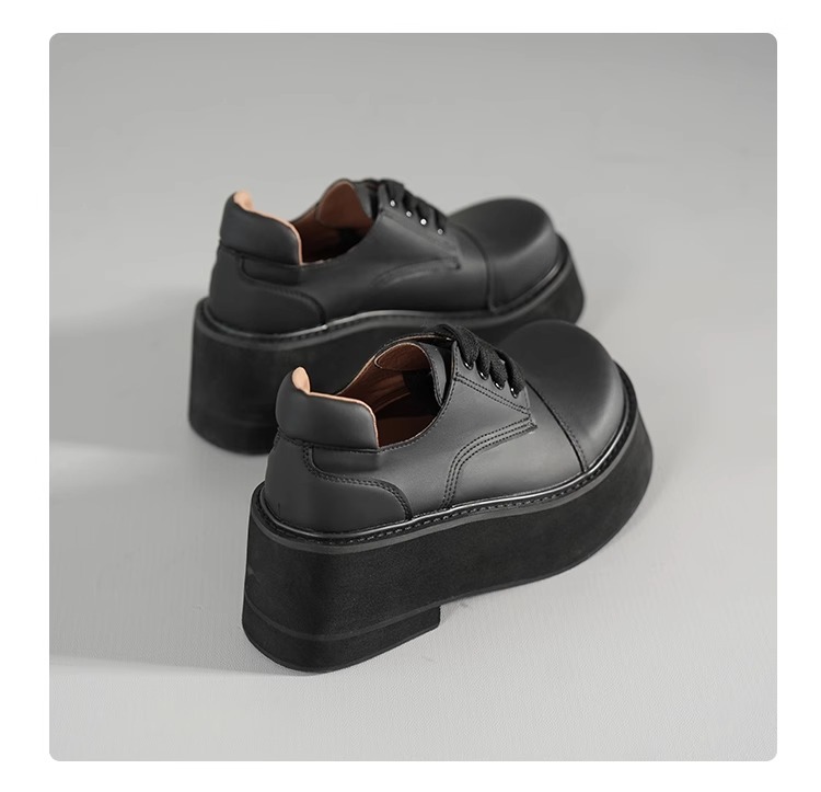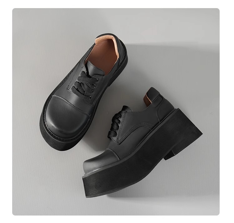 Cowhide 버전 ~ 가죽 머핀 슈퍼 두꺼운 바닥 작은 가죽 신발 새로운 다목적 레이스 업 유럽 역 시원한 신발 큰 발가락 신발스토어 가기