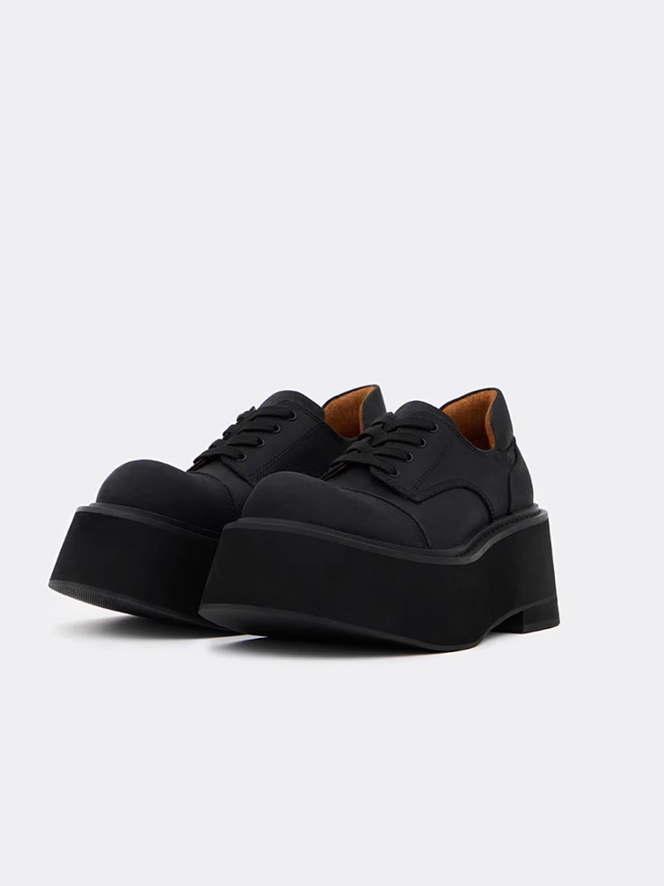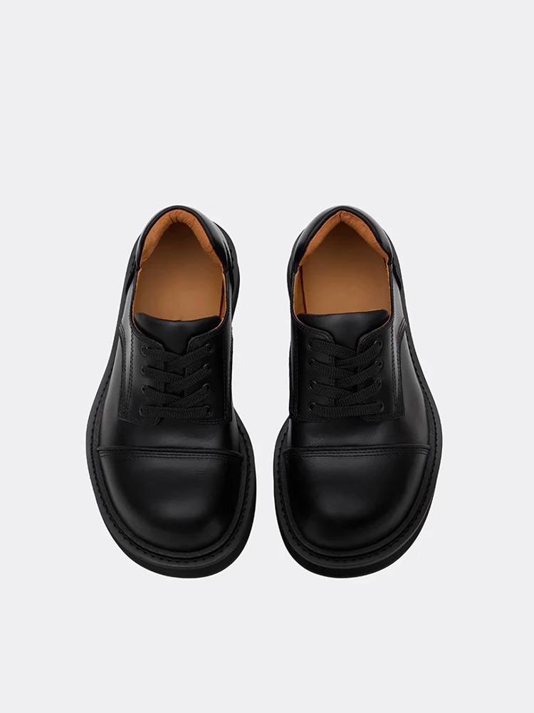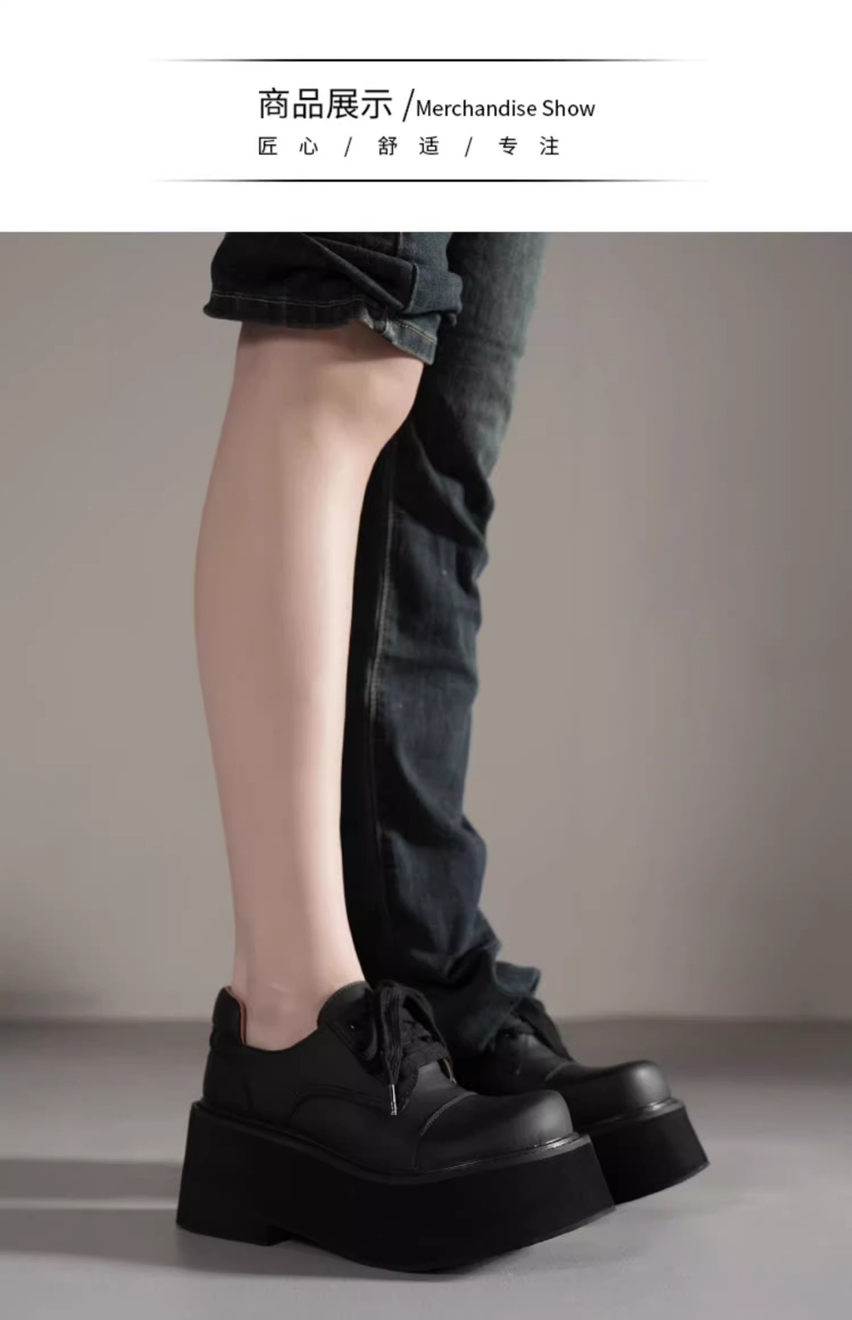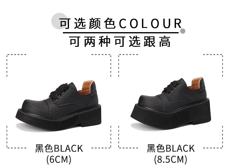 Cowhide 버전 ~ 가죽 머핀 슈퍼 두꺼운 바닥 작은 가죽 신발 새로운 다목적 레이스 업 유럽 역 시원한 신발 큰 발가락 신발스토어 가기