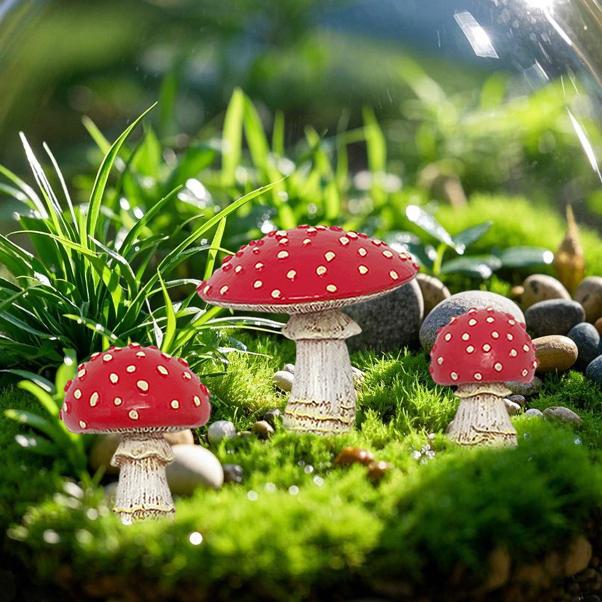 3 개의 야외 정원 조경 정원 장식 미니 식물 분재 수지 장식품의 국경 발광 버섯 플러그인 세트