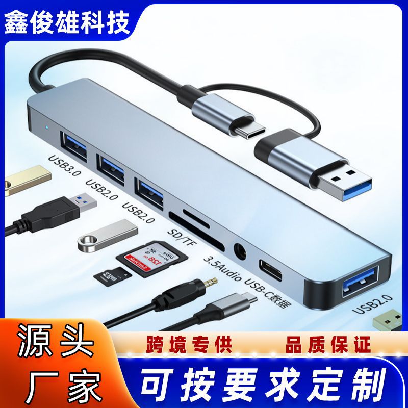 국경 간 usb/type-c 도킹 스테이션 8 대 1 TF SD 카드 읽기 허브 컴퓨터 2 대 1 변환기 오디오