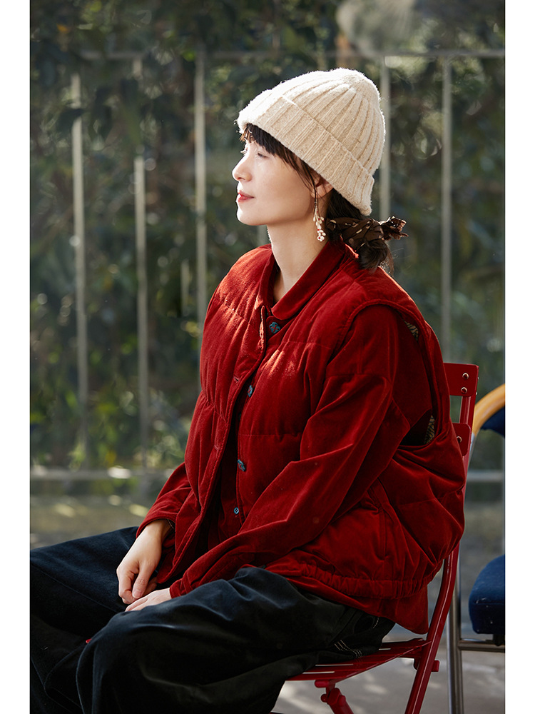 壹旧原著【杂想】冬款丝绒红平绒棉宽松保暖亲肤羽绒女马甲9292B