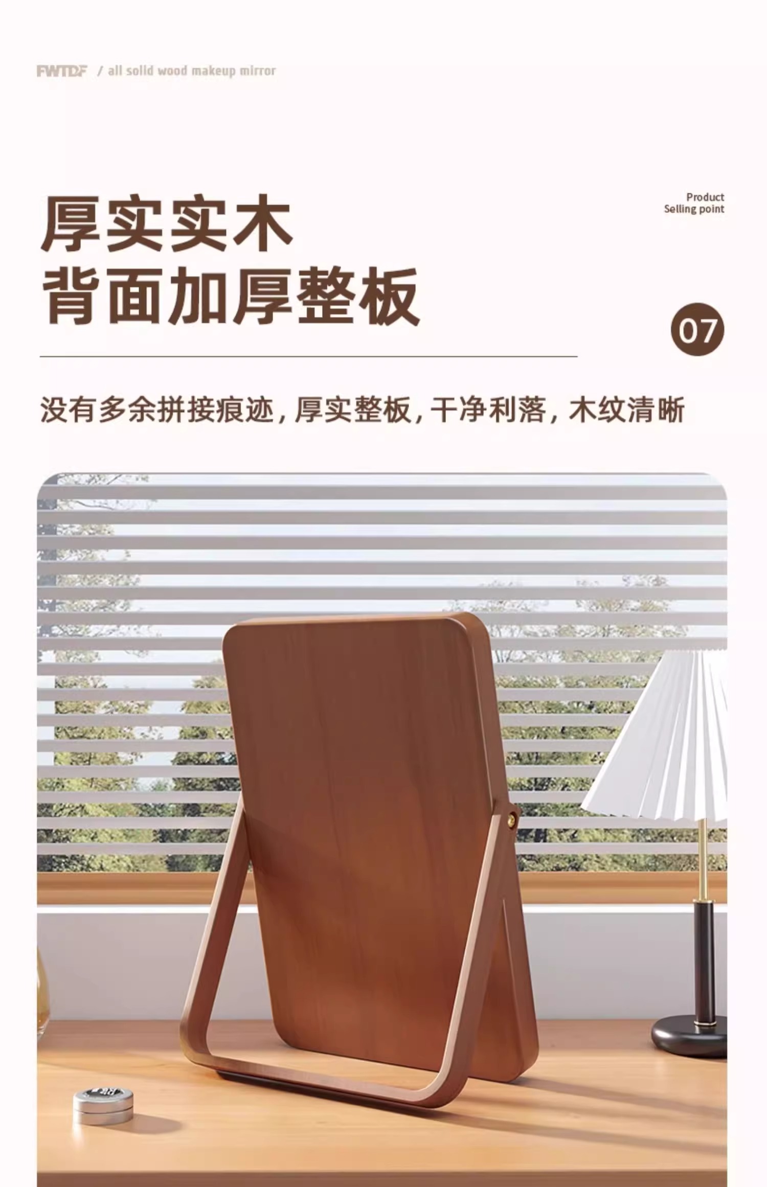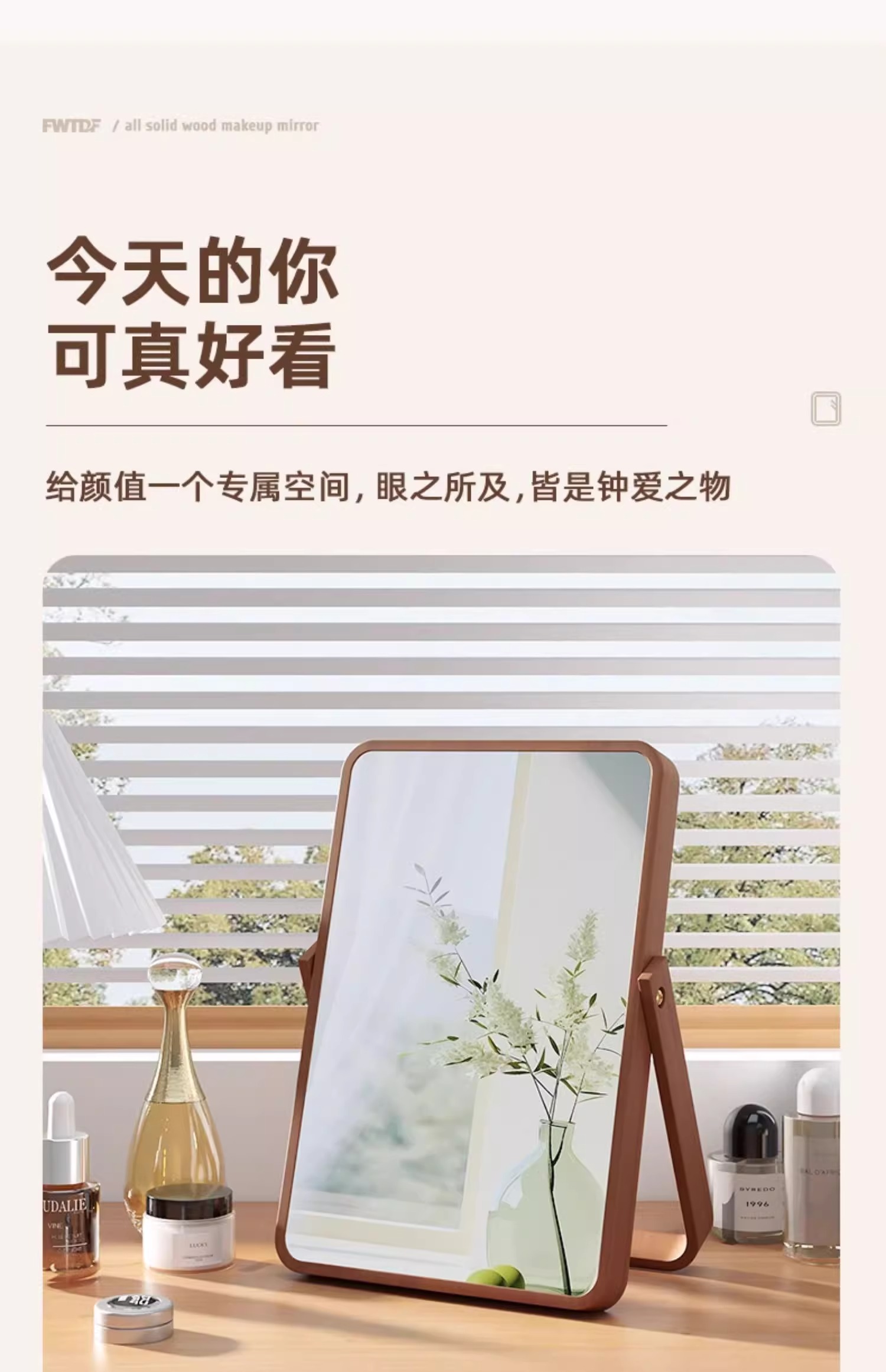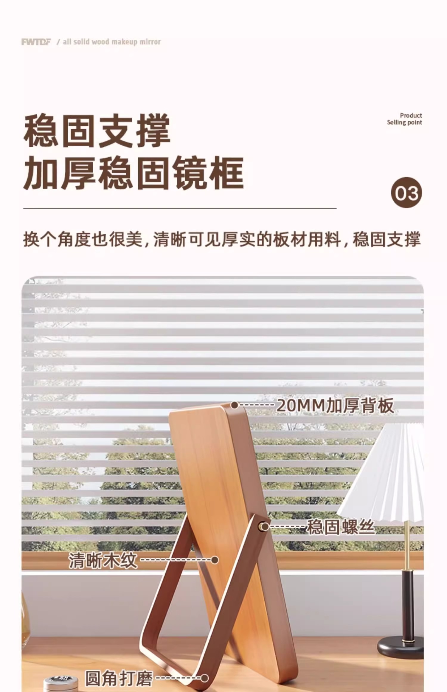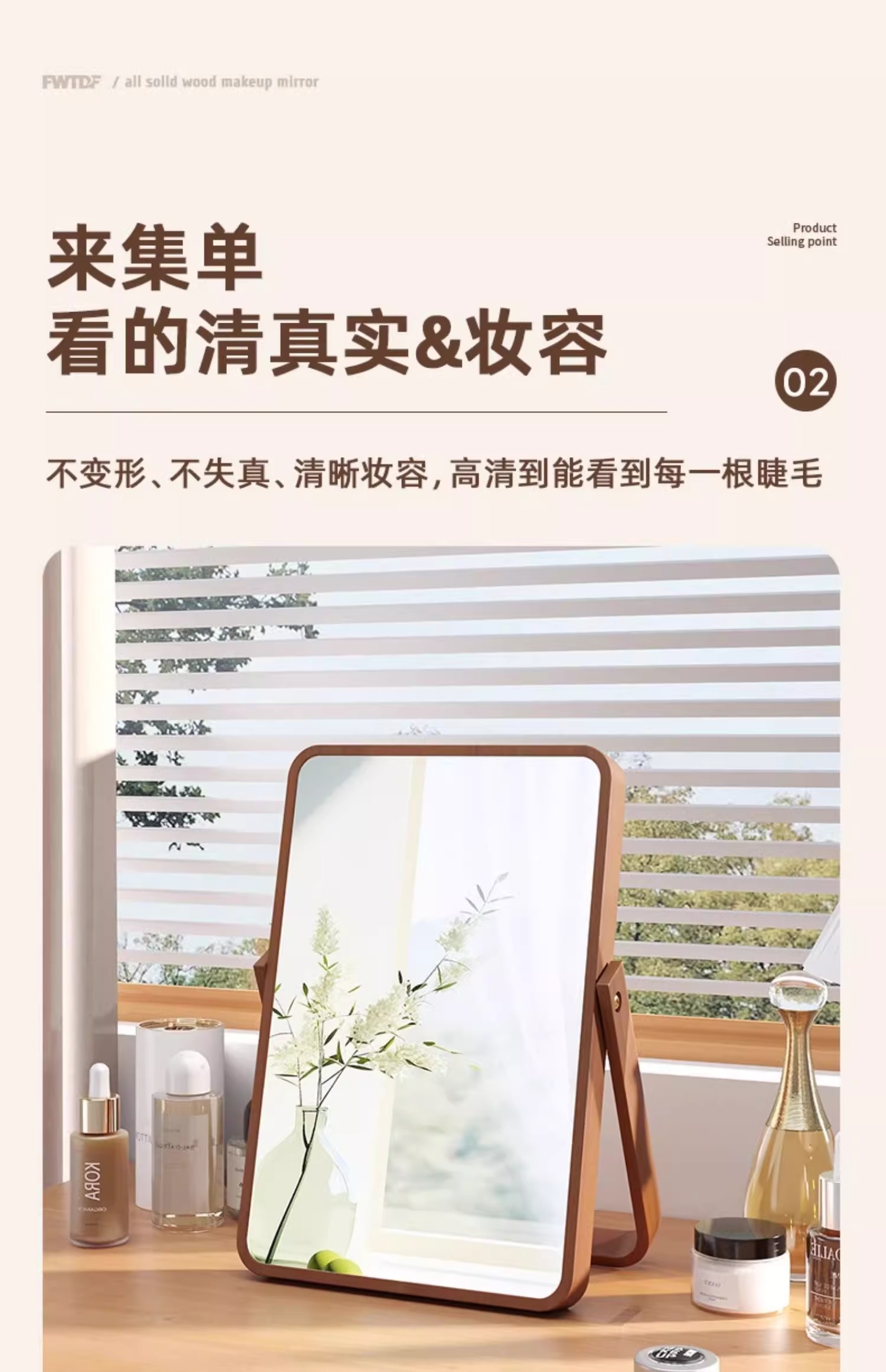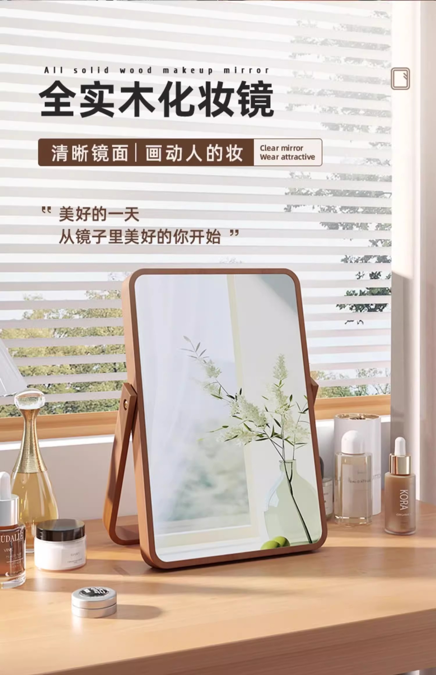 빈티지 솔리드 우드 메이크업 미러 데스크탑 홈 드레싱 테이블 드레싱 거울 여성 침실 휴대용 접이식 대형 거울