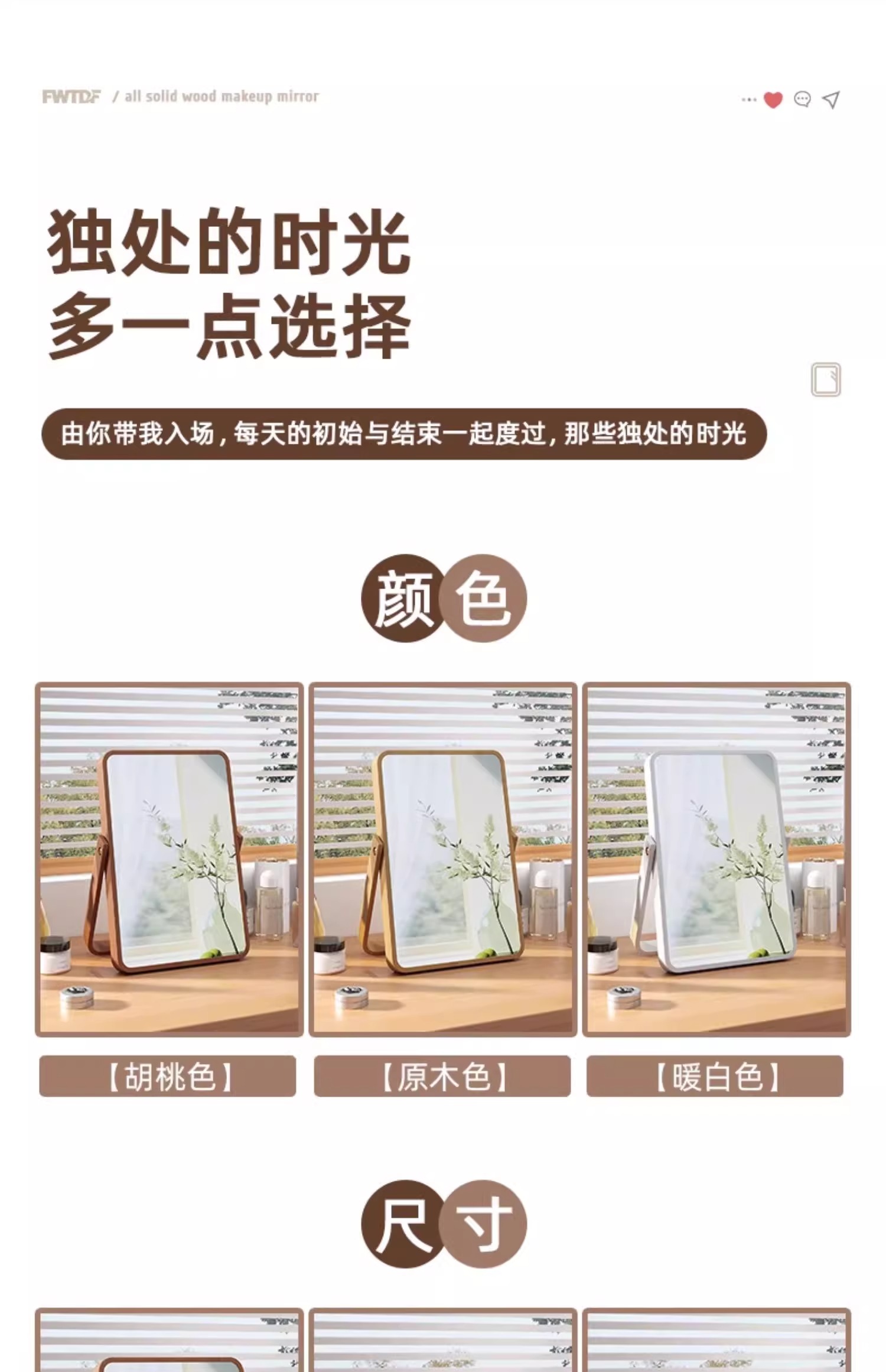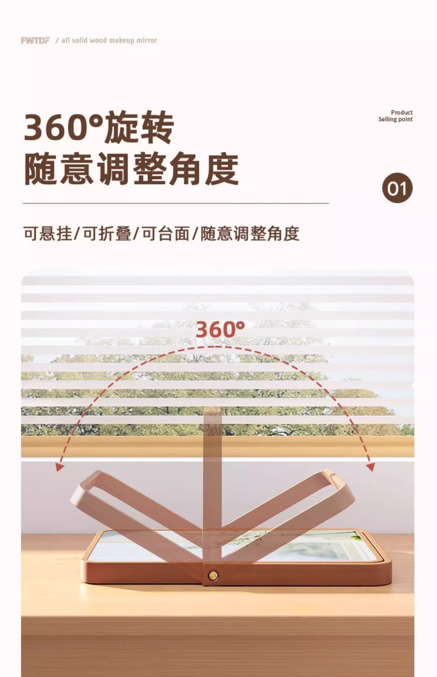 • 원목 접이식 거울-중간-따뜻한 흰색