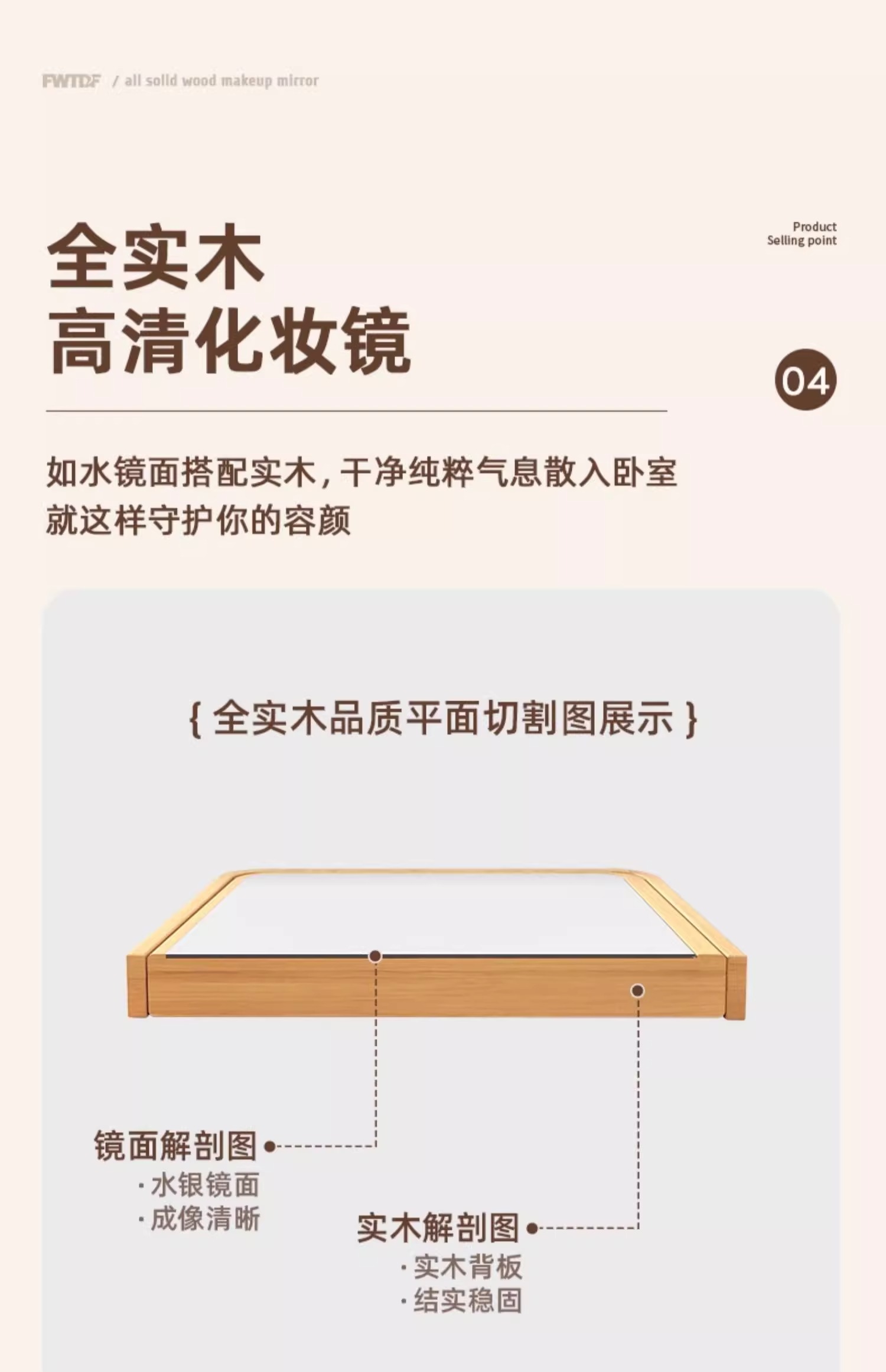 • 원목 접이식 거울-소형-따뜻한 흰색