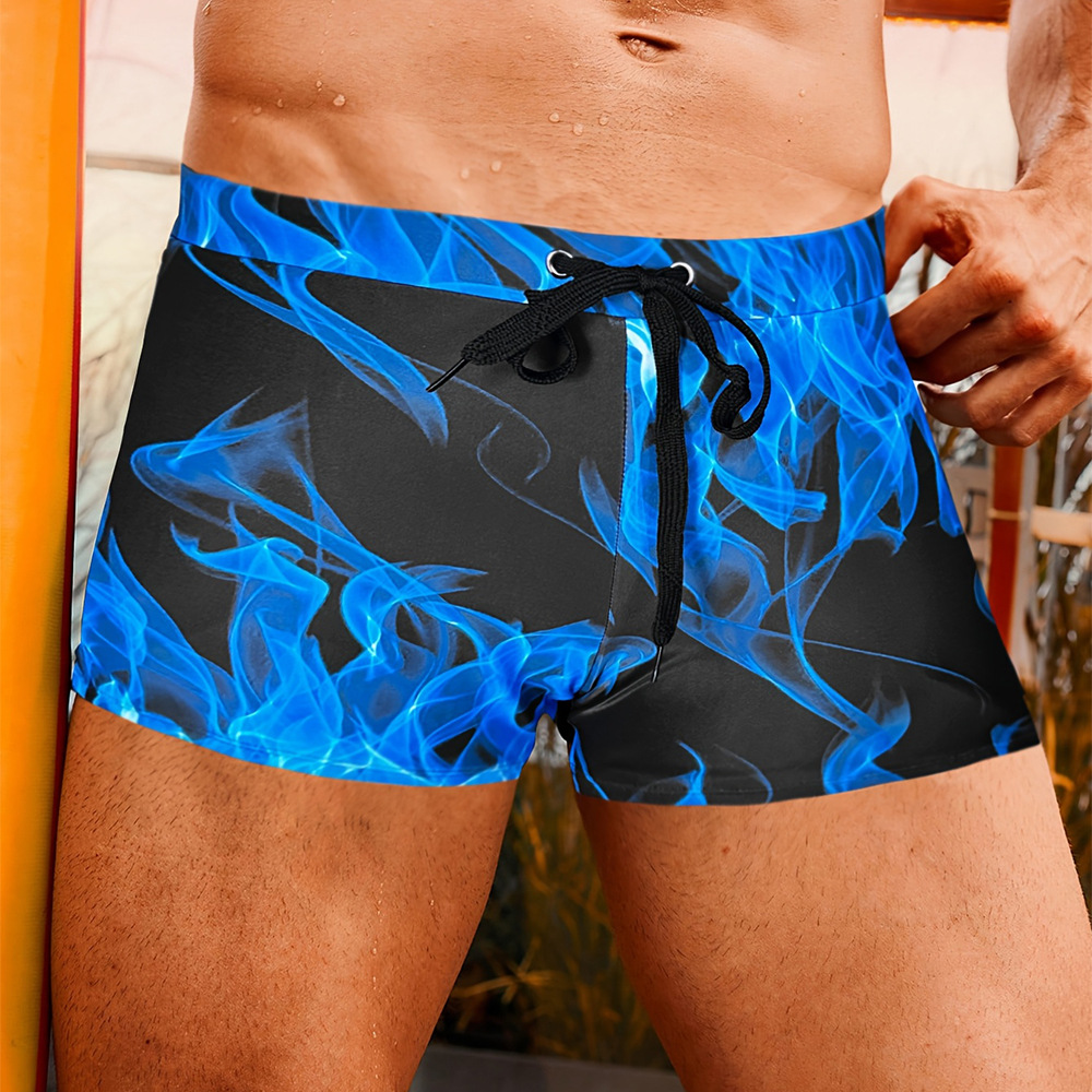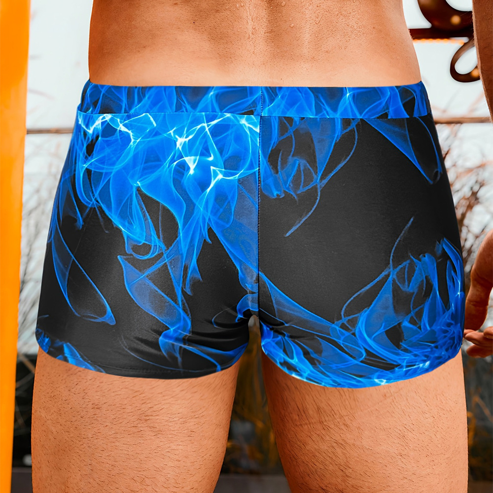 2025 새로운 남성 복서 불꽃 패턴 빠른 건조 패션 스포츠 간단한 수영 국경 해변 바지스토어 가기