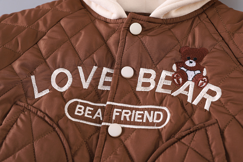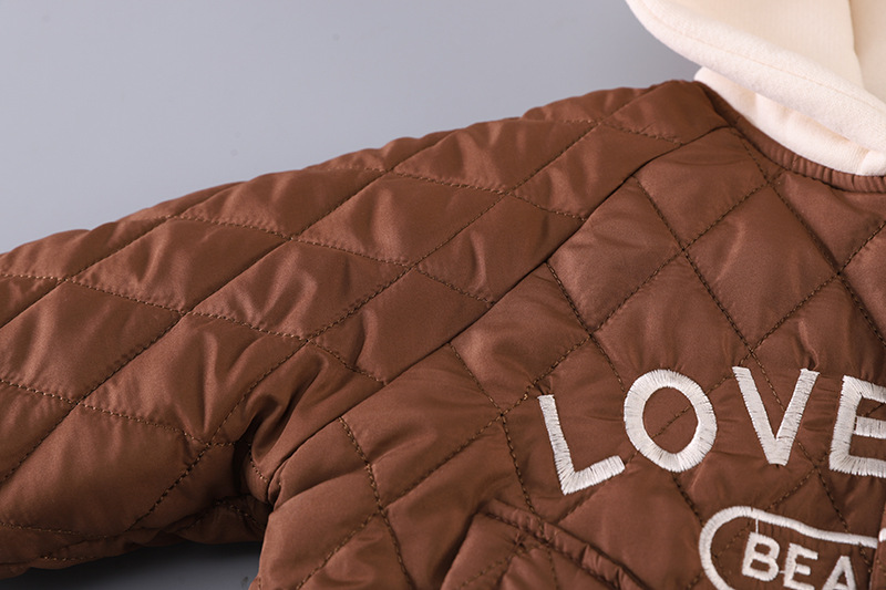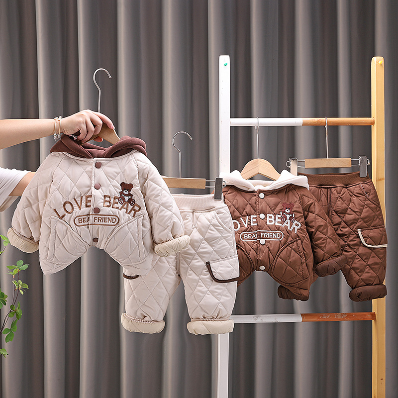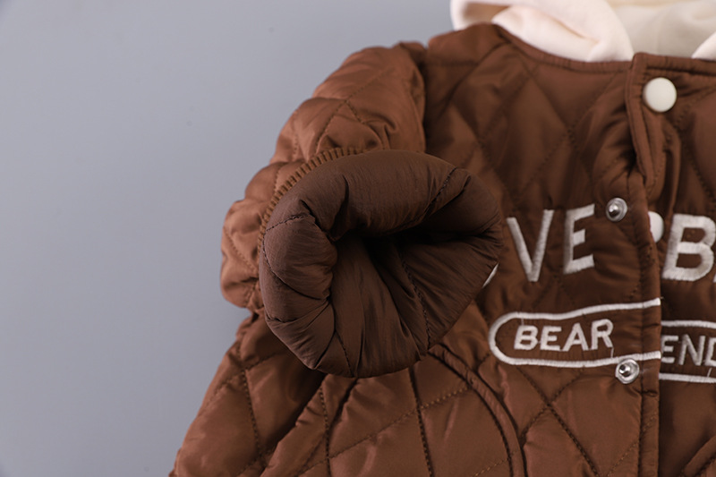 아동복 2024 가을과 겨울 한국 소년 기모 후드 글자 2 피스면 패딩 재킷 겨울 어린이 세트