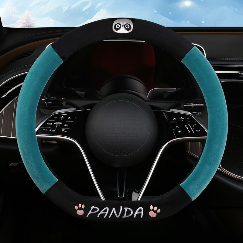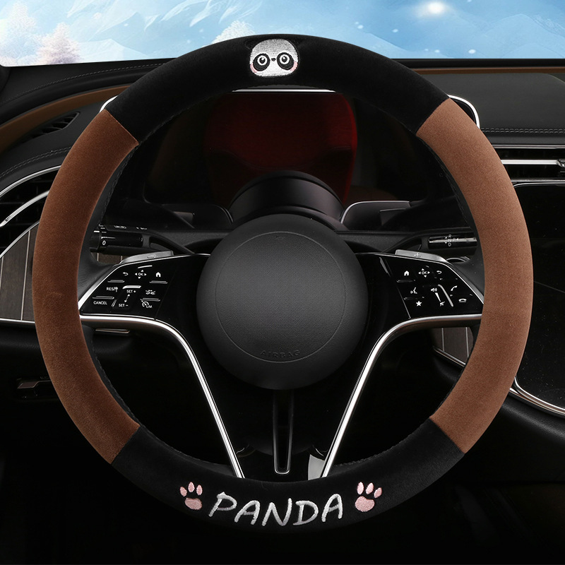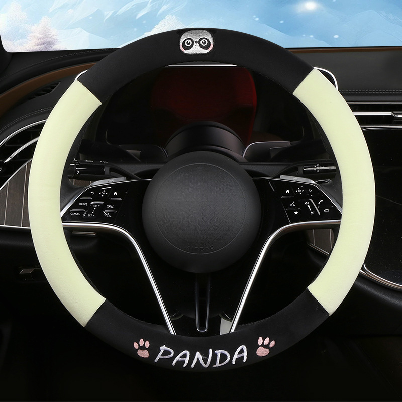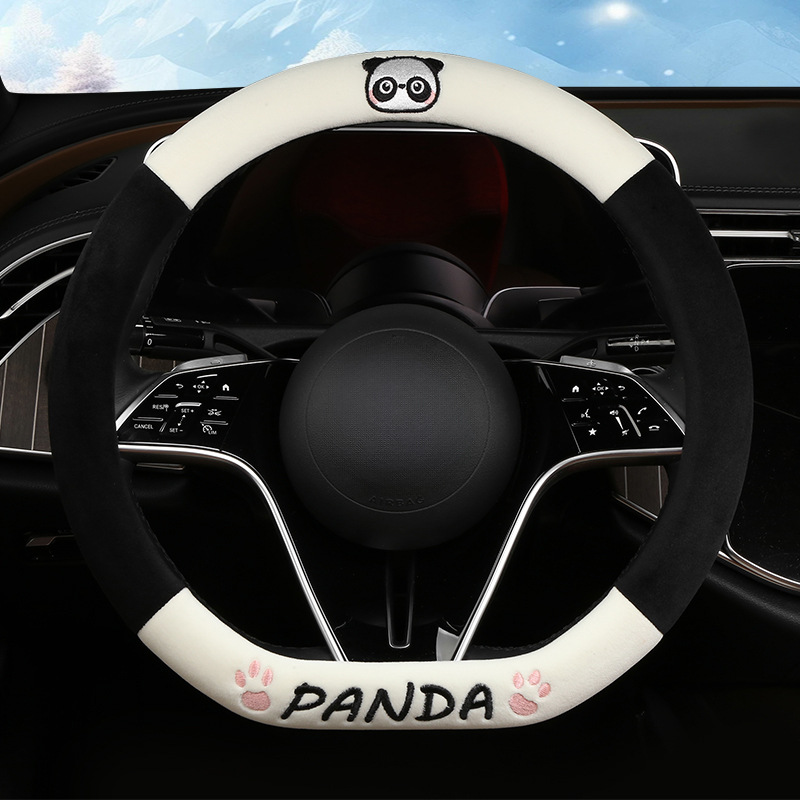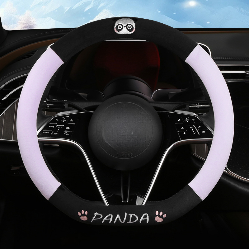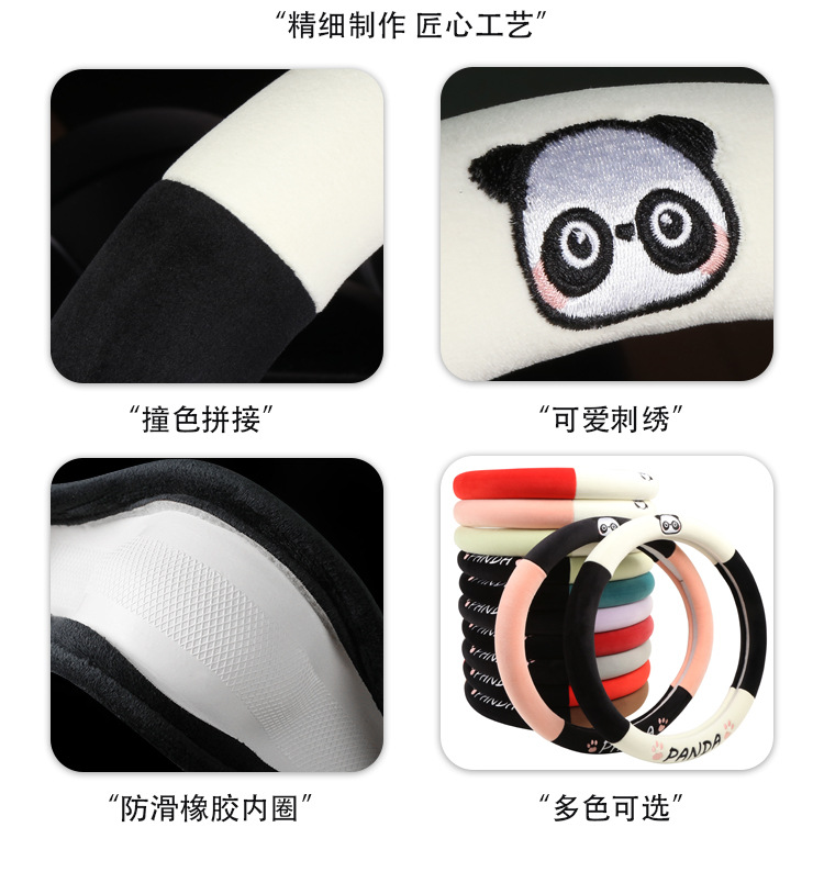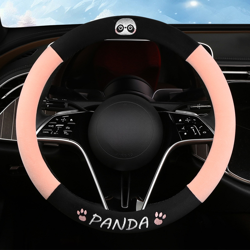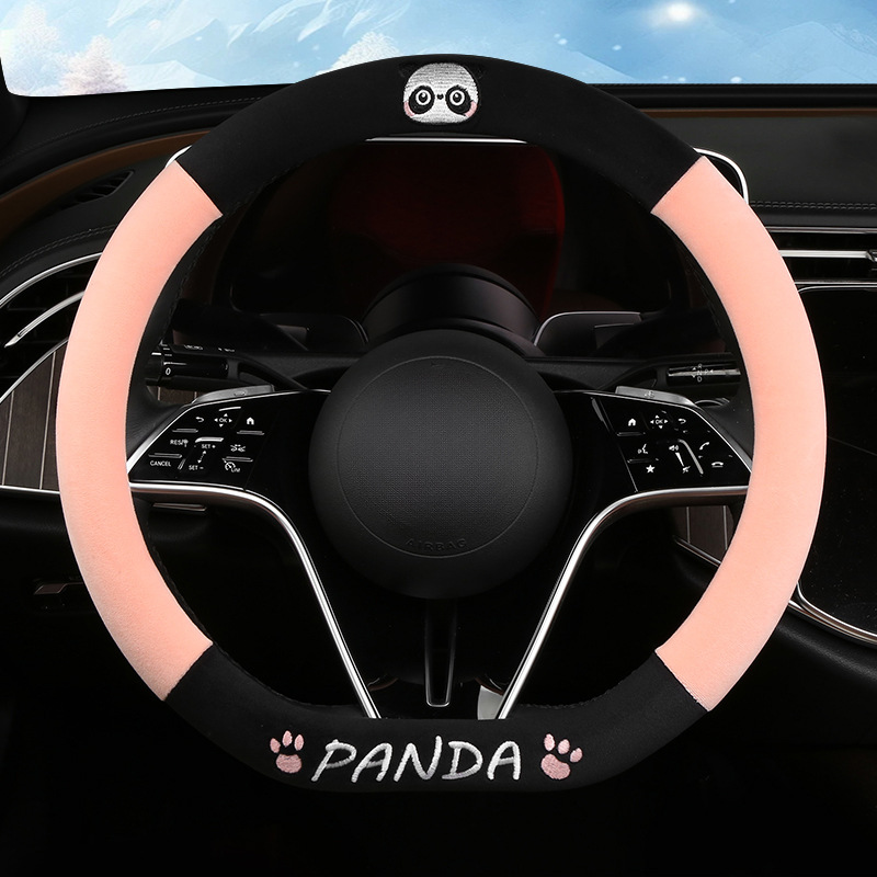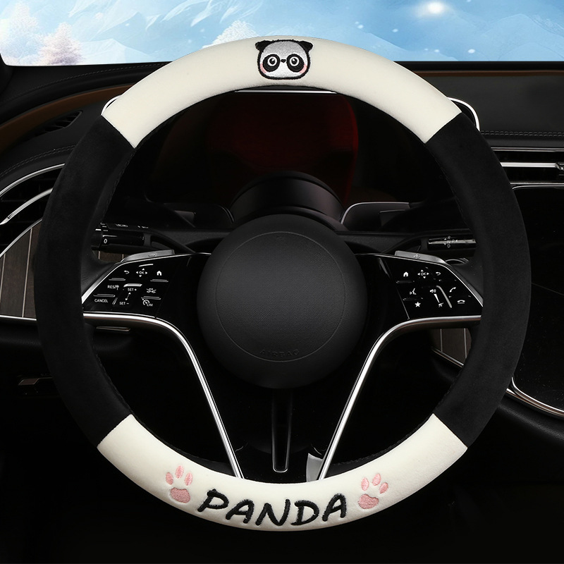 자동차 스티어링 휠 커버 만화 자수 팬더 겨울 따뜻한 자동차 공급 보편적 인 국경 도매 자동차 핸들 커버