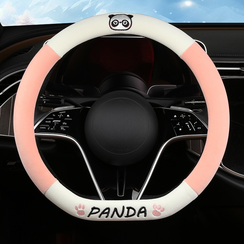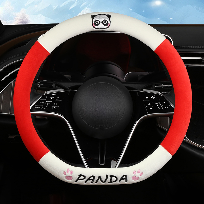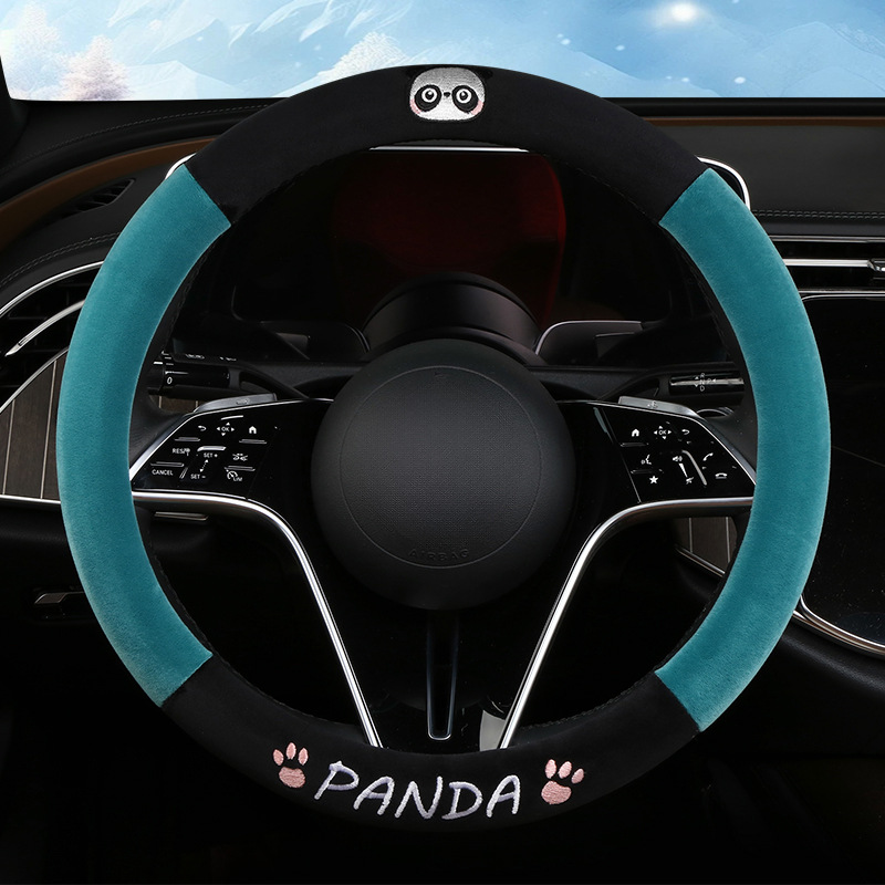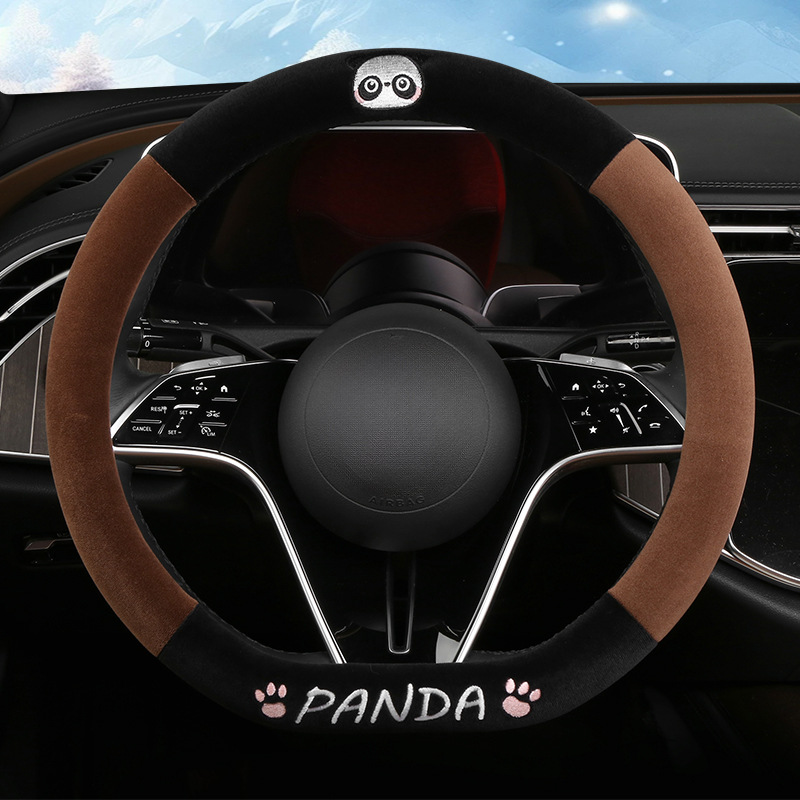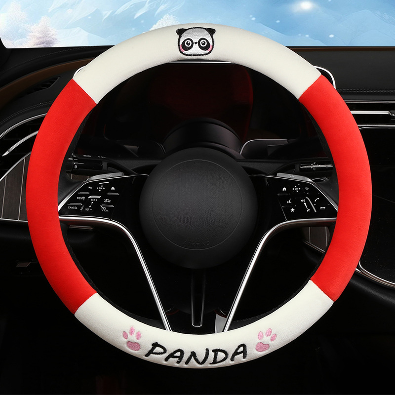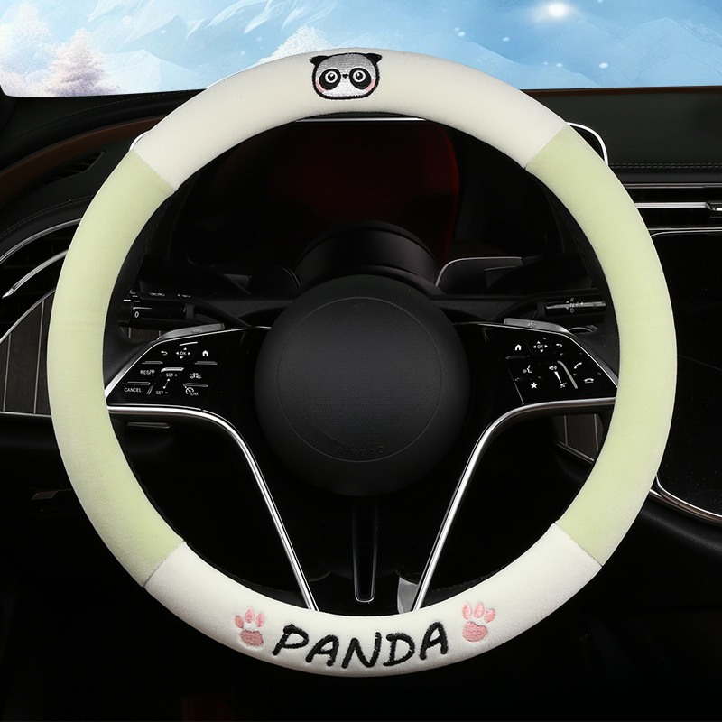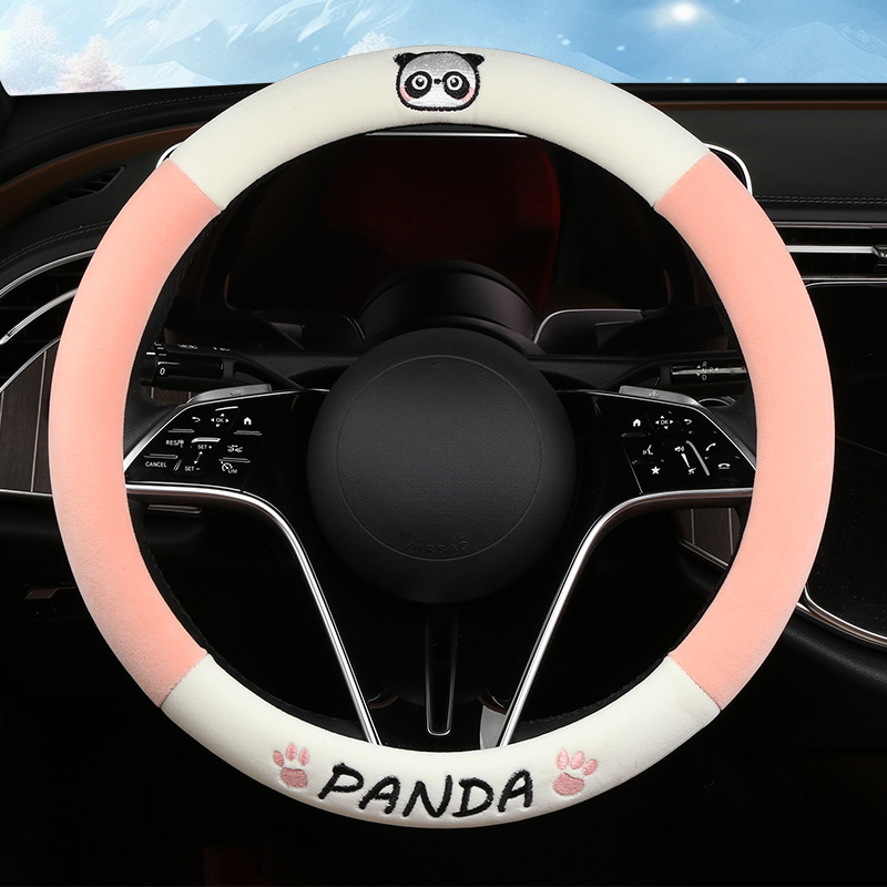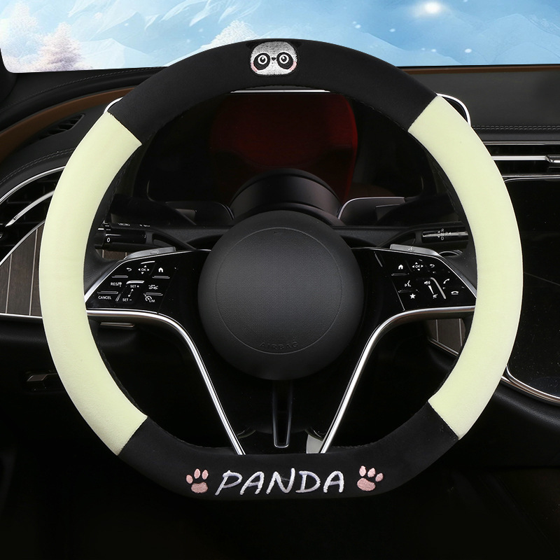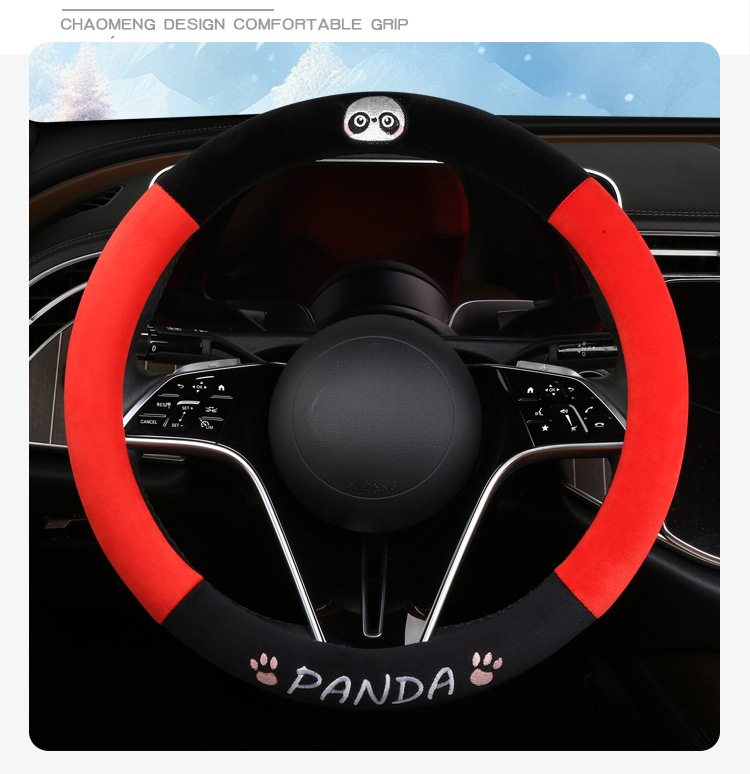 자동차 스티어링 휠 커버 만화 자수 팬더 겨울 따뜻한 자동차 공급 보편적 인 국경 도매 자동차 핸들 커버