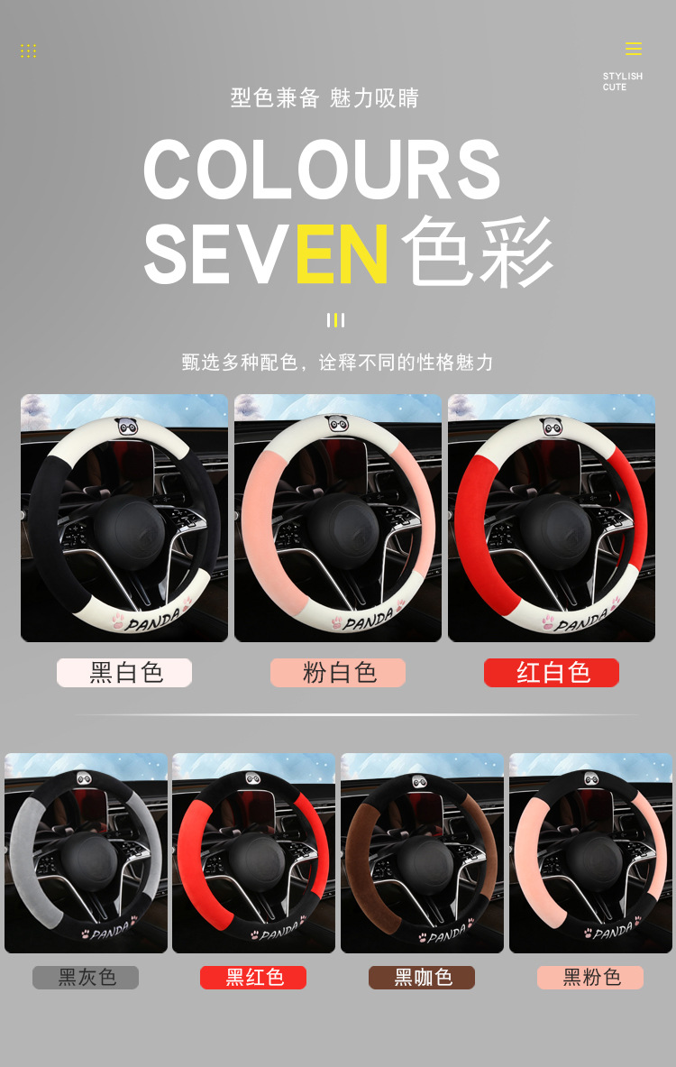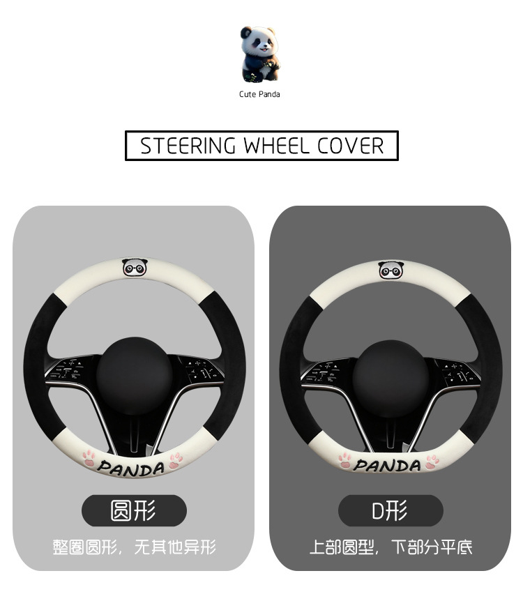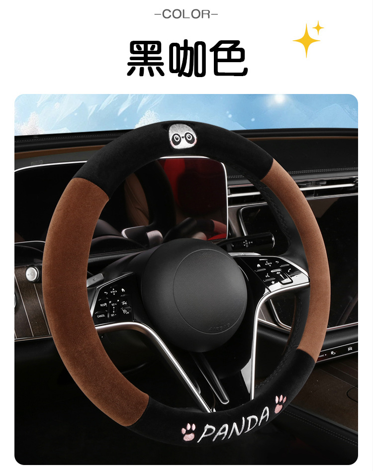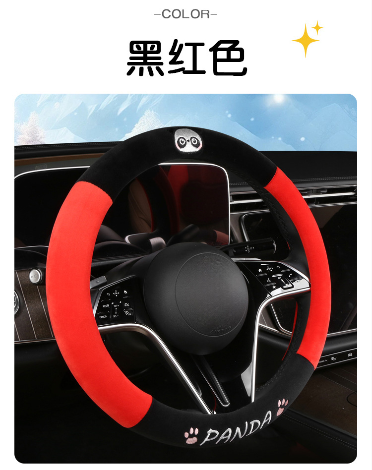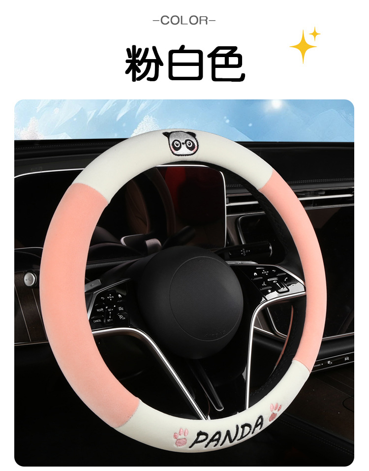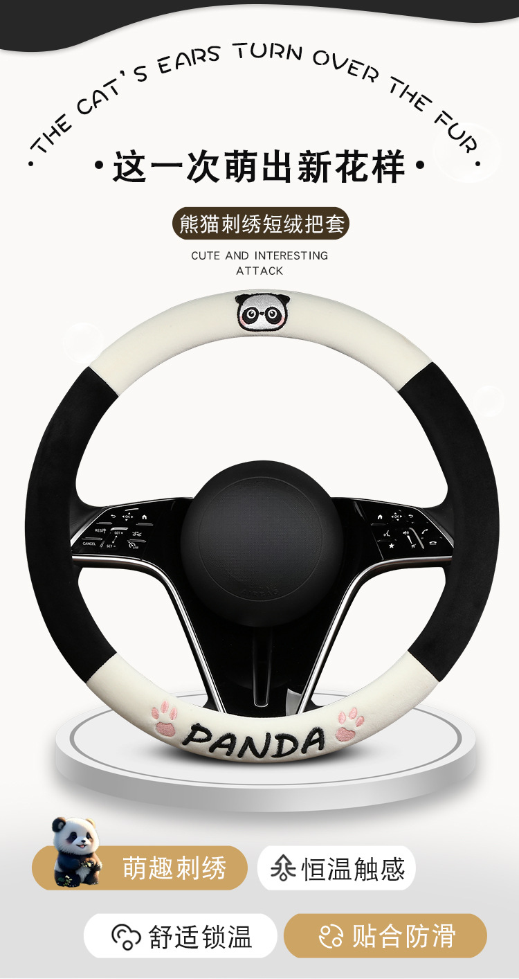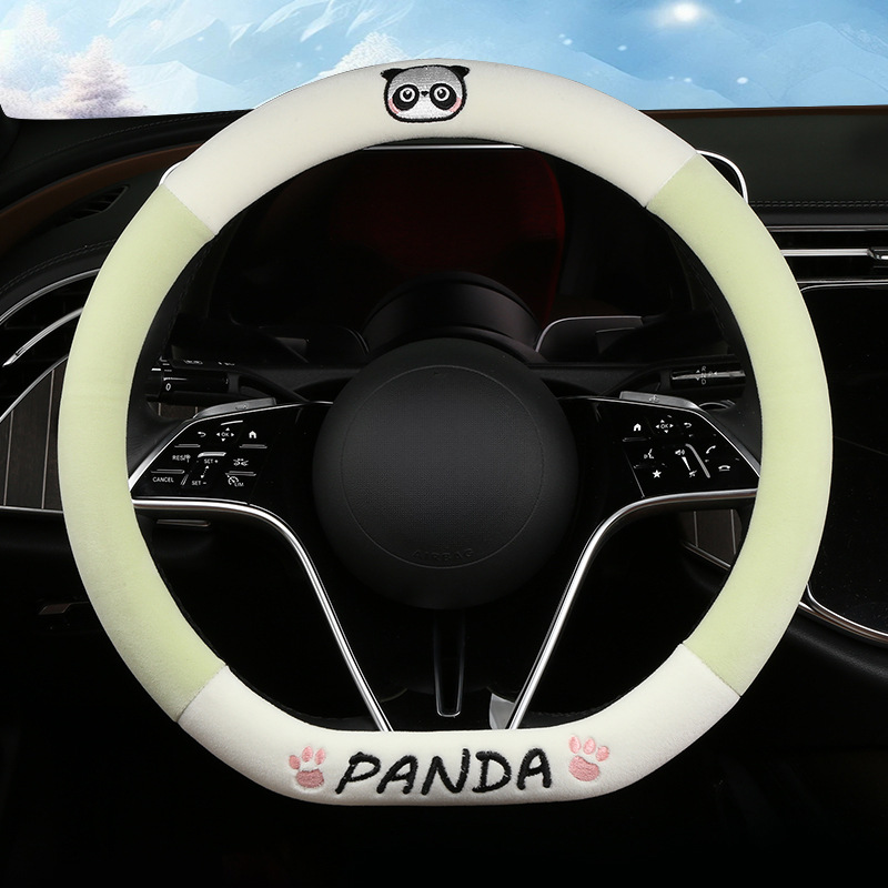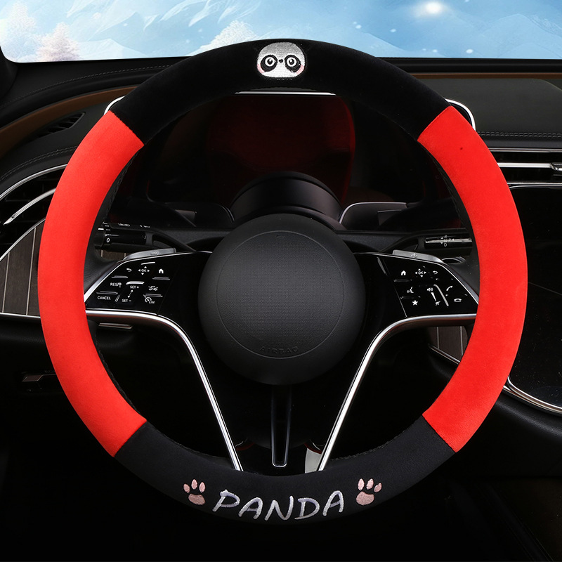 자동차 스티어링 휠 커버 만화 자수 팬더 겨울 따뜻한 자동차 공급 보편적 인 국경 도매 자동차 핸들 커버