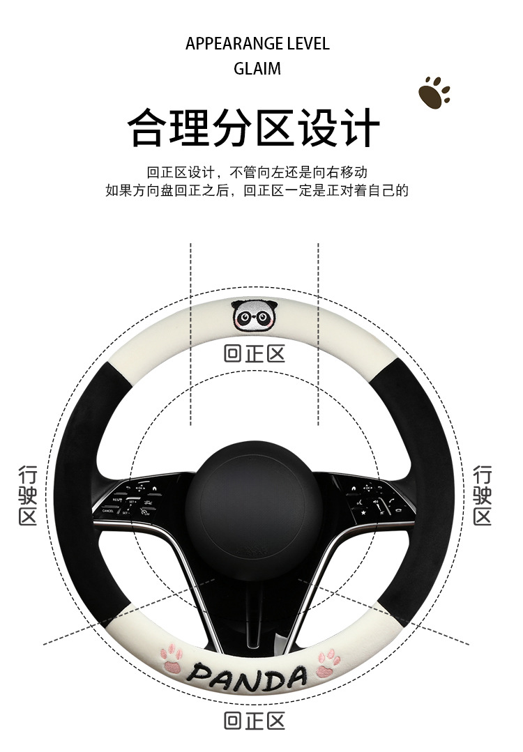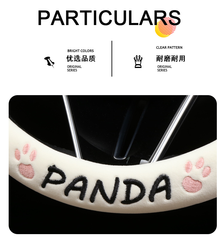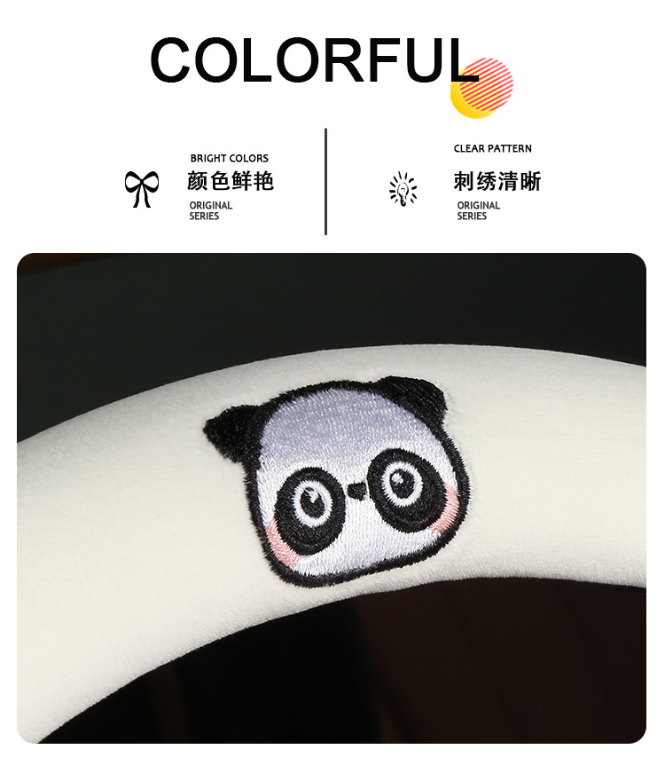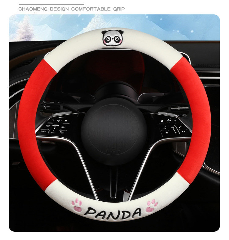 자동차 스티어링 휠 커버 만화 자수 팬더 겨울 따뜻한 자동차 공급 보편적 인 국경 도매 자동차 핸들 커버스토어 가기