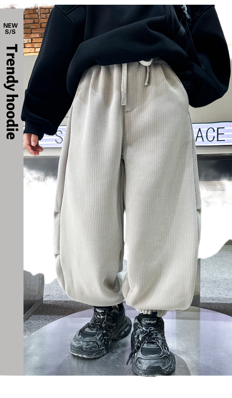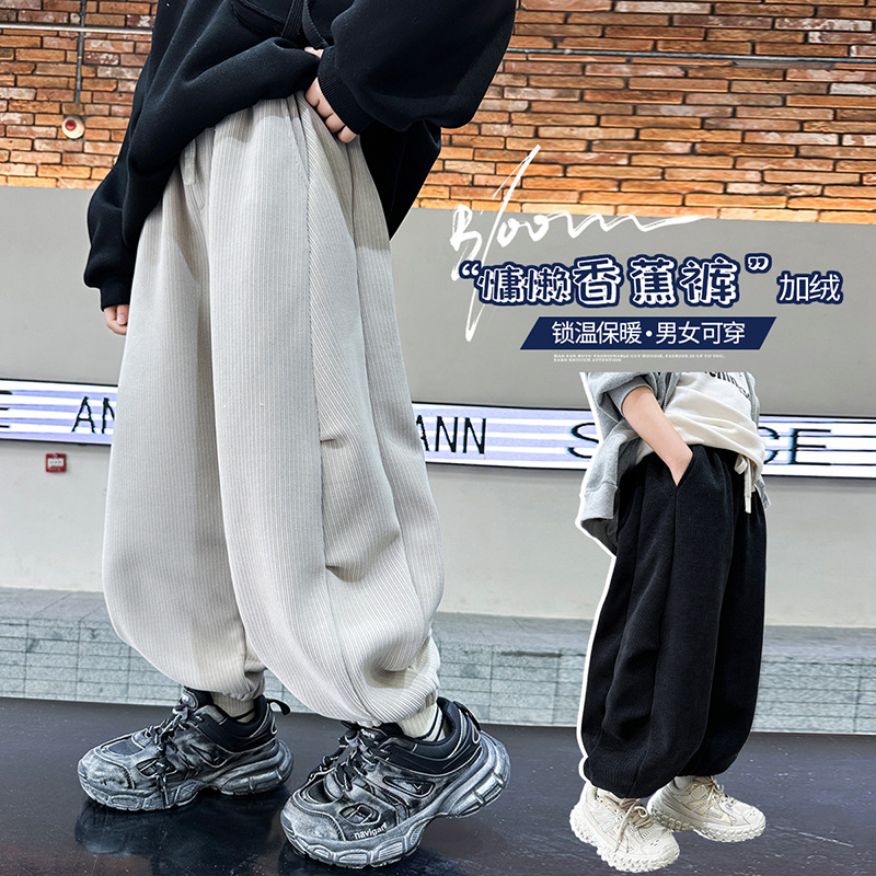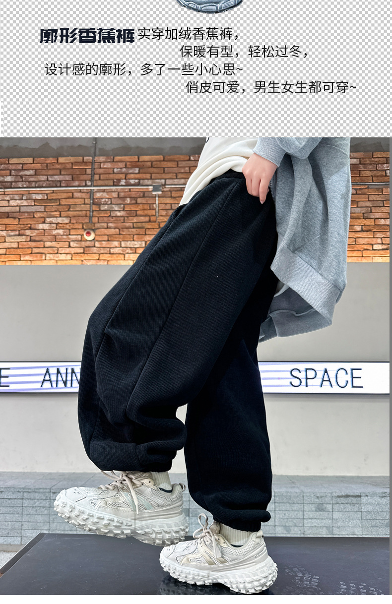 남학생 기모 스포츠 바지 2024 년 가을 · 겨울 신겨울 중년 어린이 두꺼운 바지 트렌디