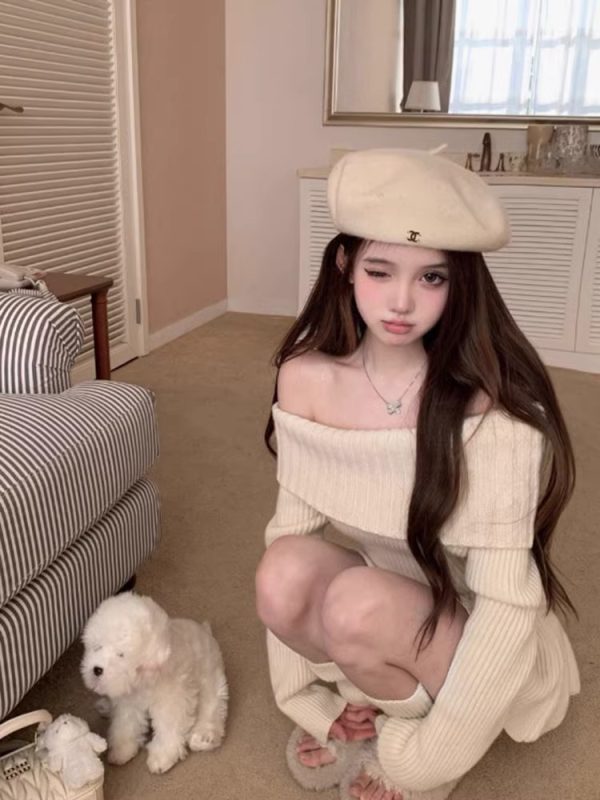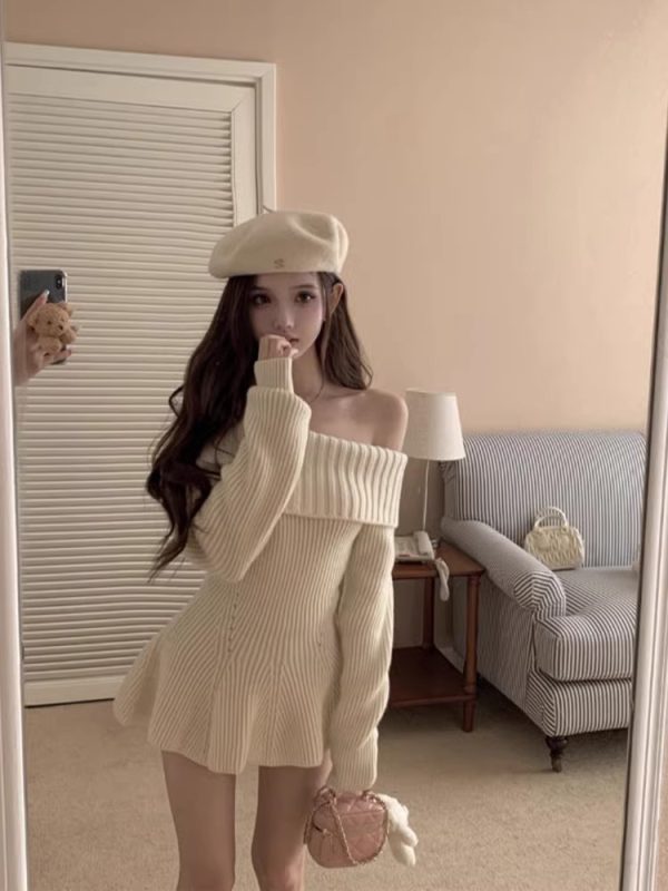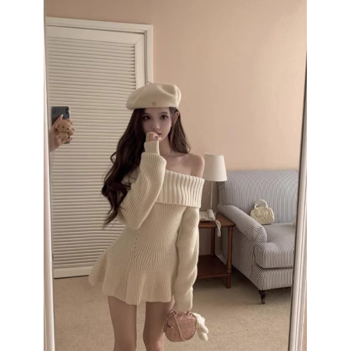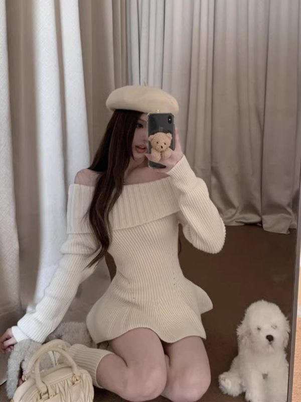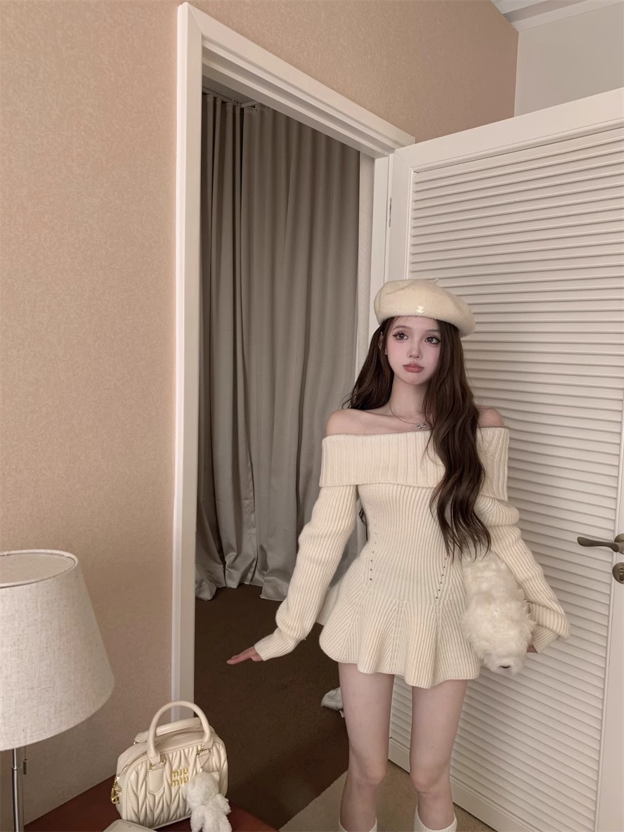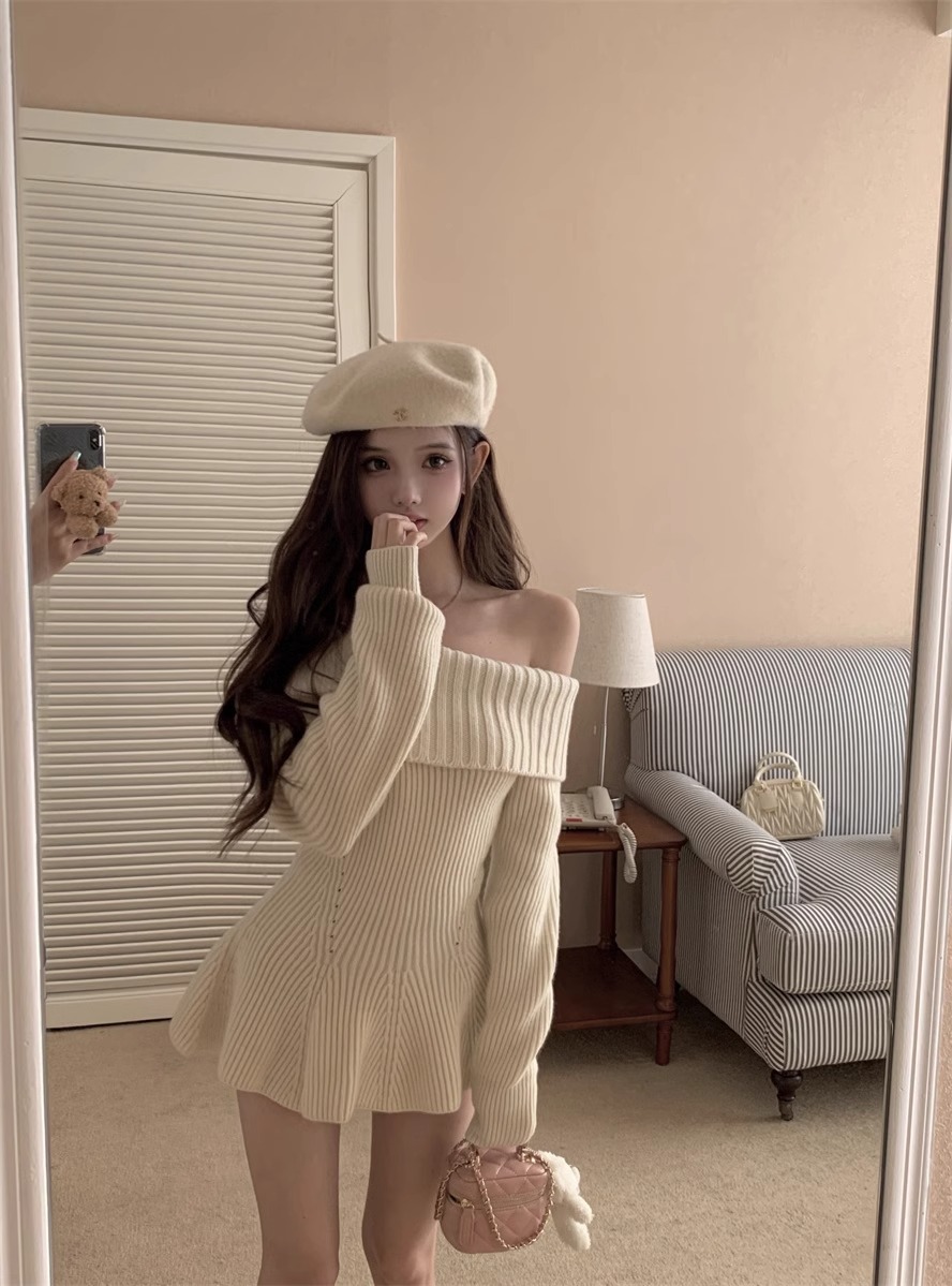 가을과 겨울 새로운 우아한 슬림 핏 슬리밍 풀오버 스웨터 탑 순수한 욕망 스타일 원목 긴팔 스웨터 여성용 의류스토어 가기