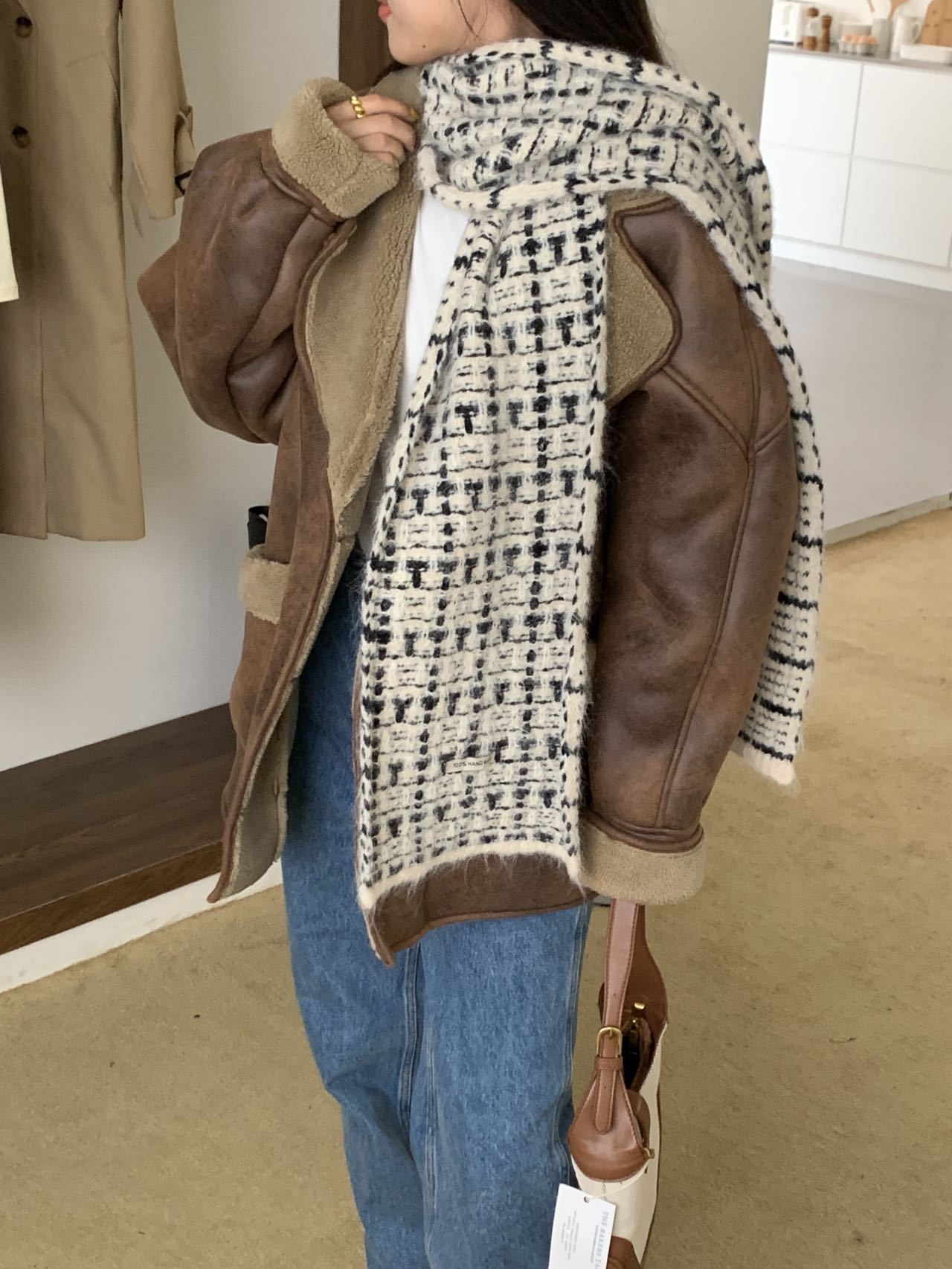 2024 새로운 스타일 두꺼운 한국 스타일 샤넬 스타일 학생 커플 따뜻한 목 영국 격자 무늬 스카프 여자 겨울 올매치스토어 가기