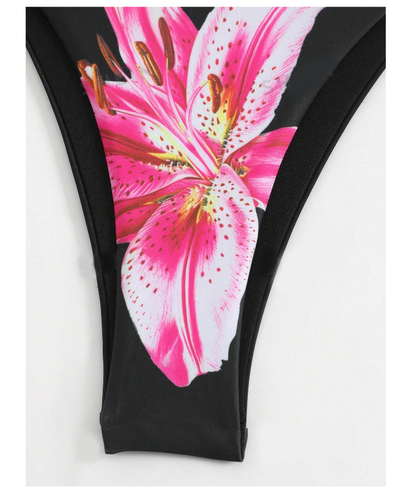 새로운 대외 무역 국경 간 유럽과 미국 비키니 커버 업 재킷 섹시한 백합 맞춤형 프린트 수영복 3 피스 세트스토어 가기