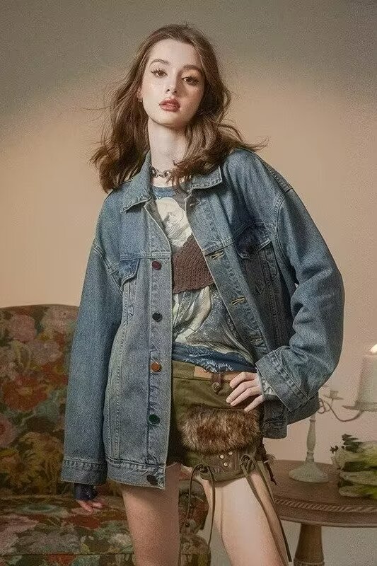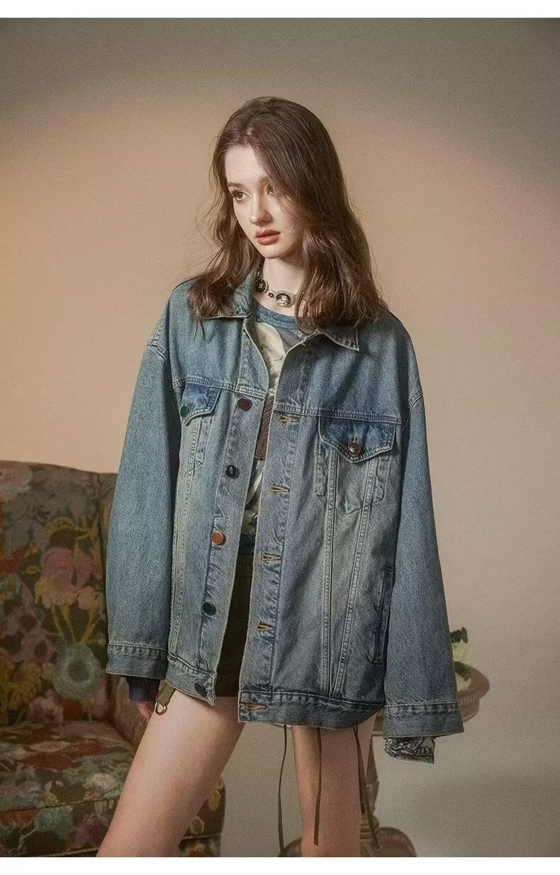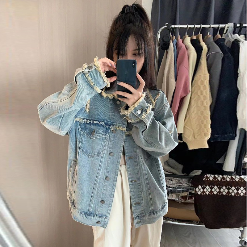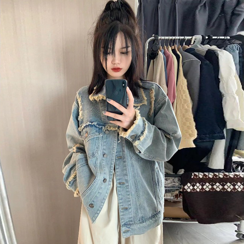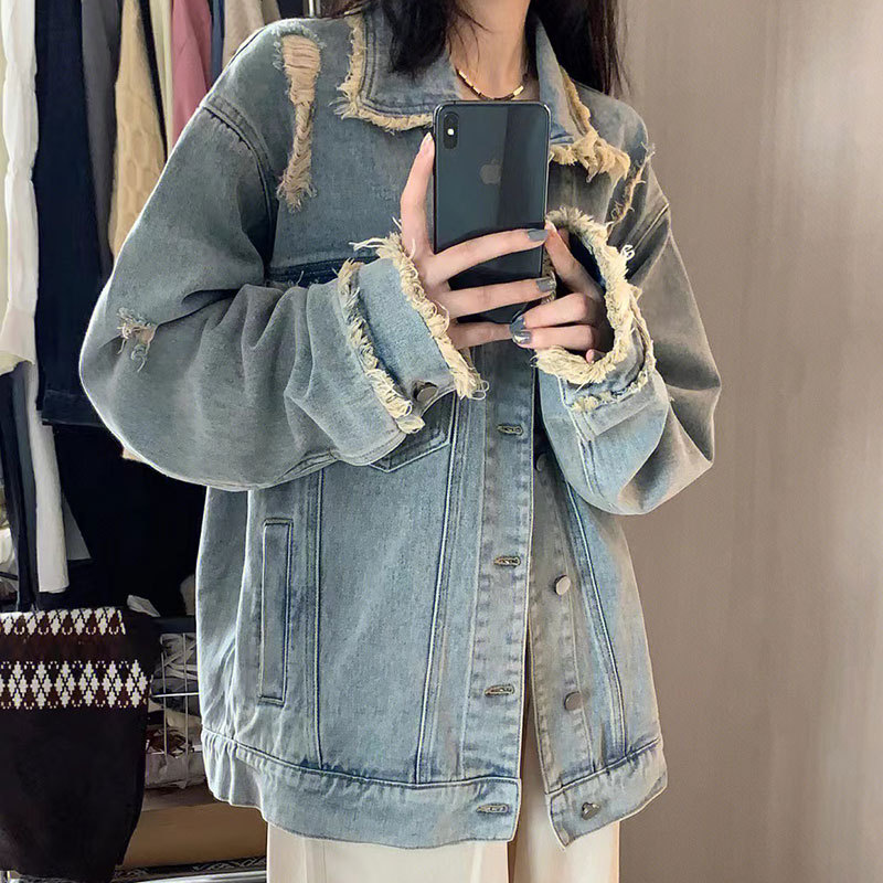디자인 감각 2024 새로운 데님 코트 여성의 봄과 가을 패션 브랜드 느슨한 틈새 복고풍 고민 재킷 bf top스토어 가기