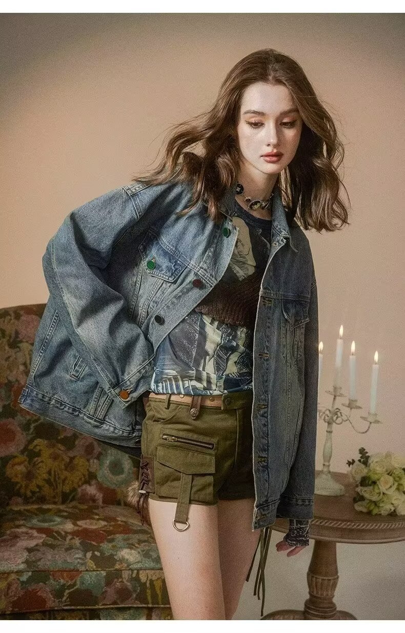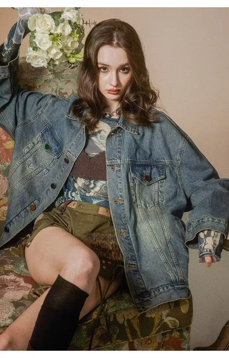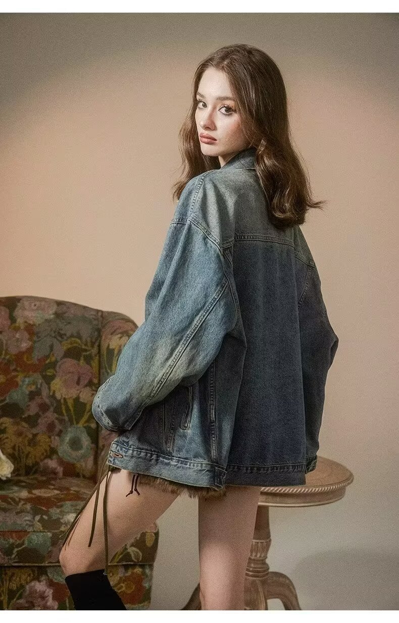 디자인 감각 2024 새로운 데님 코트 여성의 봄과 가을 패션 브랜드 느슨한 틈새 복고풍 고민 재킷 bf top