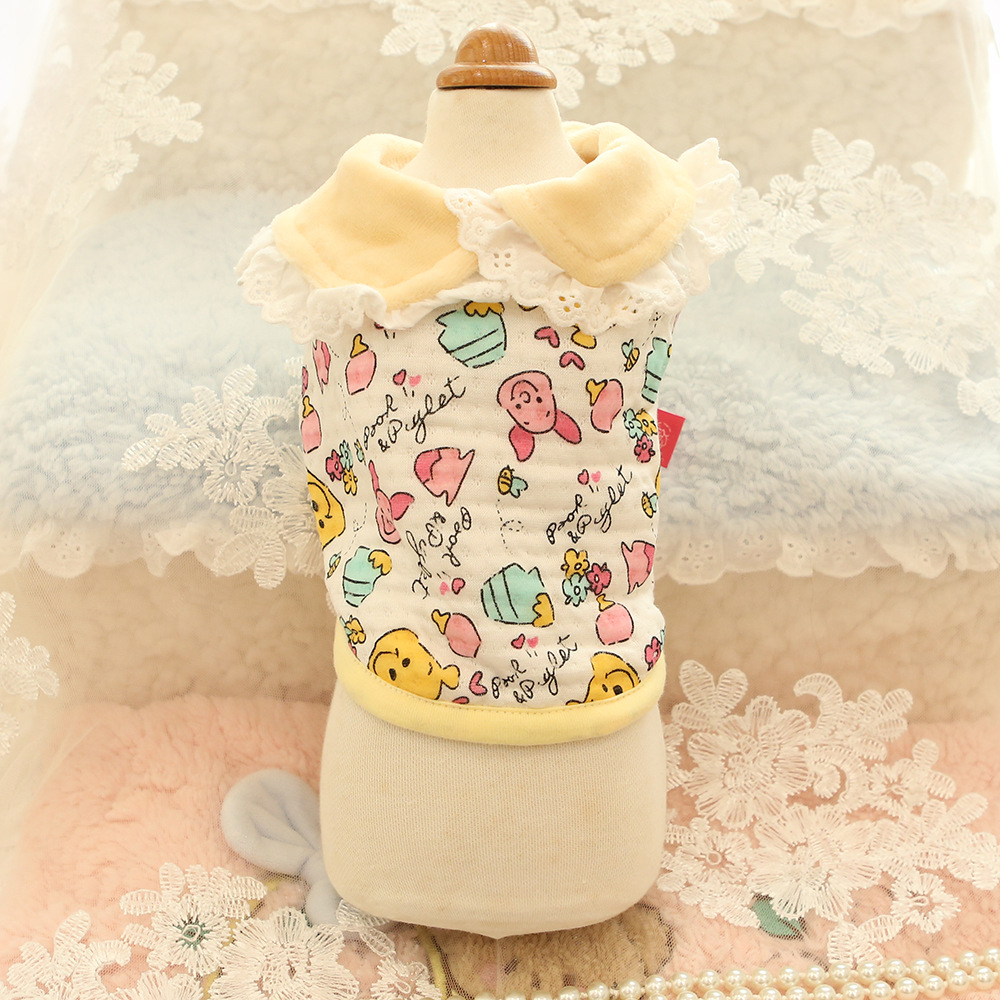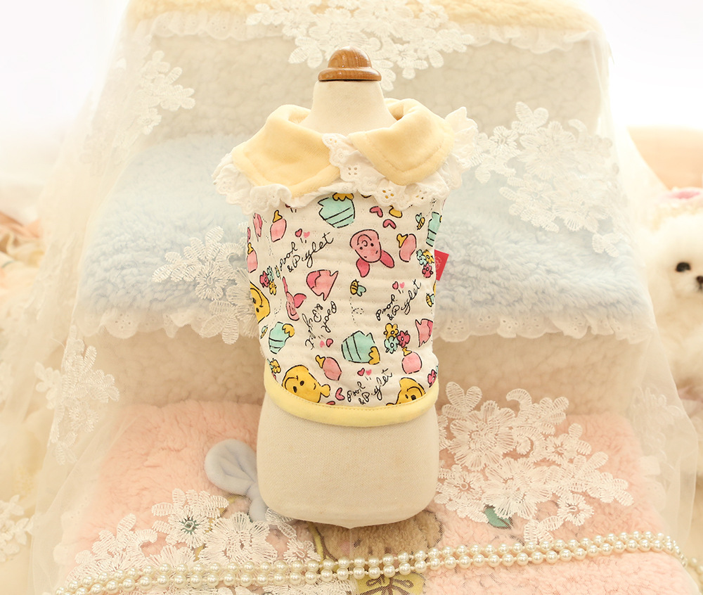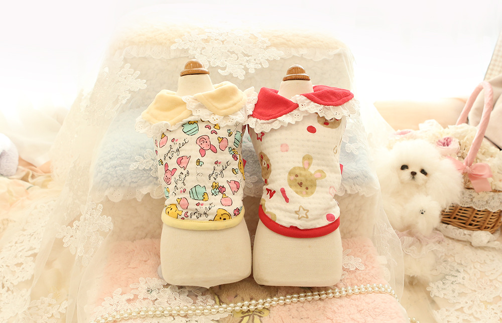 가을과 겨울 새로운 작은 애완 동물 옷 레이스 옷깃 코튼 셔츠 고양이 곰 Malzis 개 옷 접힘