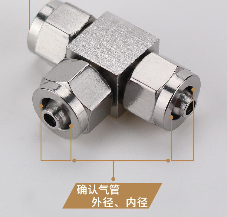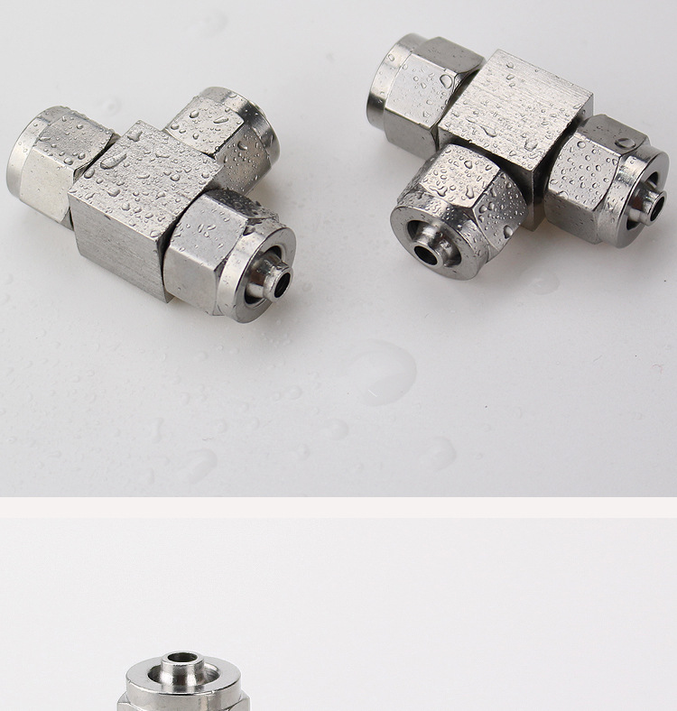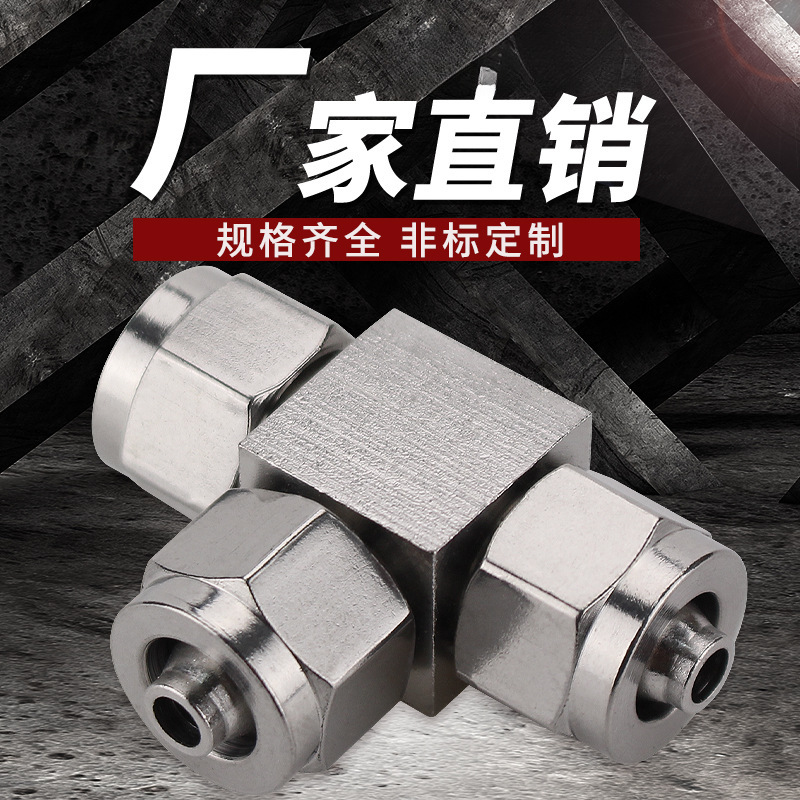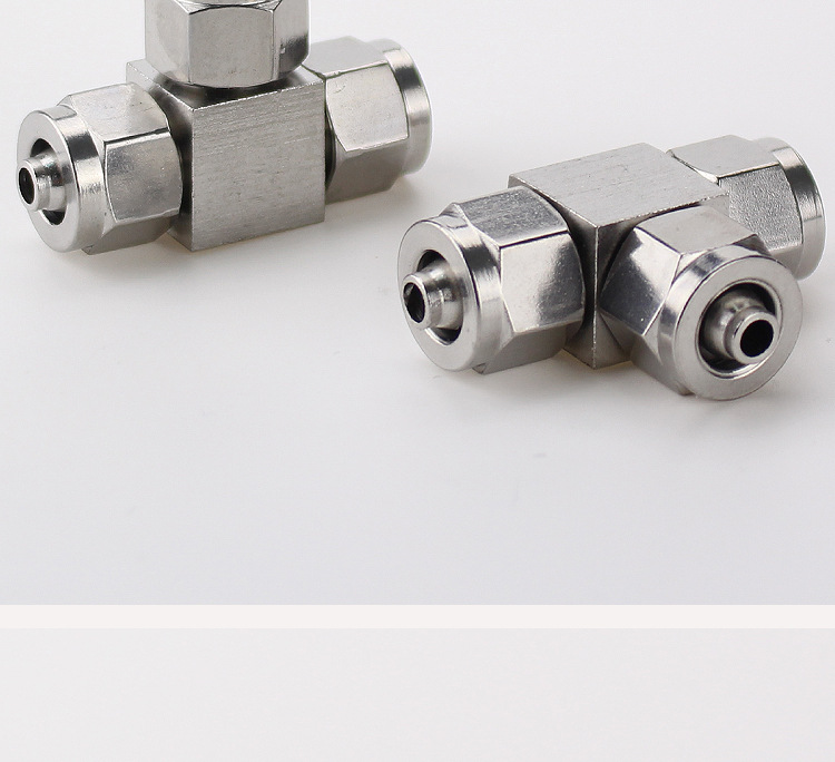 304 스테인레스 스틸 퀵 트위스트 티 가변 직경 스레드 트라 체아 퀵 조인트 나일론 튜브 테플론 튜브 호스 잠금 어머니