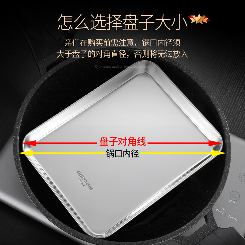 JIDO 304 스테인레스 스틸 쌀 그릇 김이 판 직사각형 플레이트 쿨 스킨 플레이트 가정용 상업용 트레이 찐 쌀 그릇 스퀘어 플레이트스토어 가기