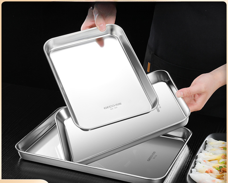 JIDO 304 스테인레스 스틸 쌀 그릇 김이 판 직사각형 플레이트 쿨 스킨 플레이트 가정용 상업용 트레이 찐 쌀 그릇 스퀘어 플레이트