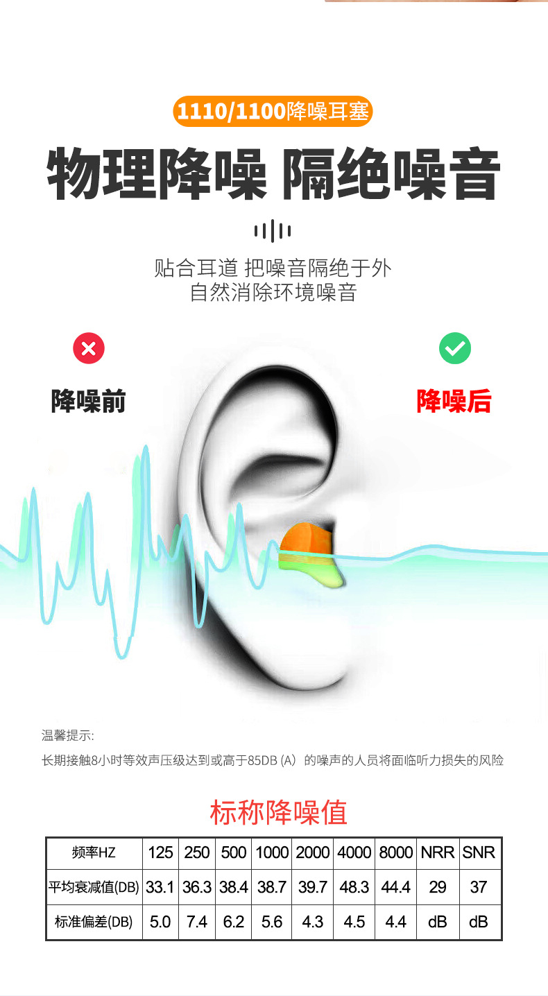 3M1100/1110 귀마개 전자 상거래 에디션 방음 및 소음 감소 귀마개 작업, 연구 및 수면 선택을위한 가방 10 팩