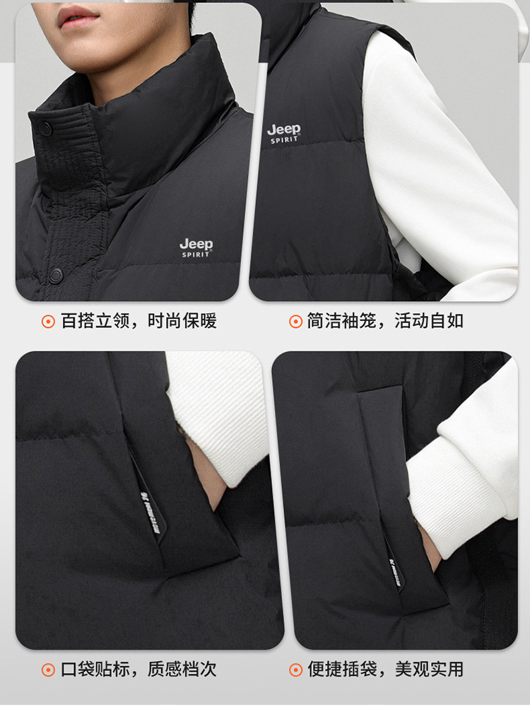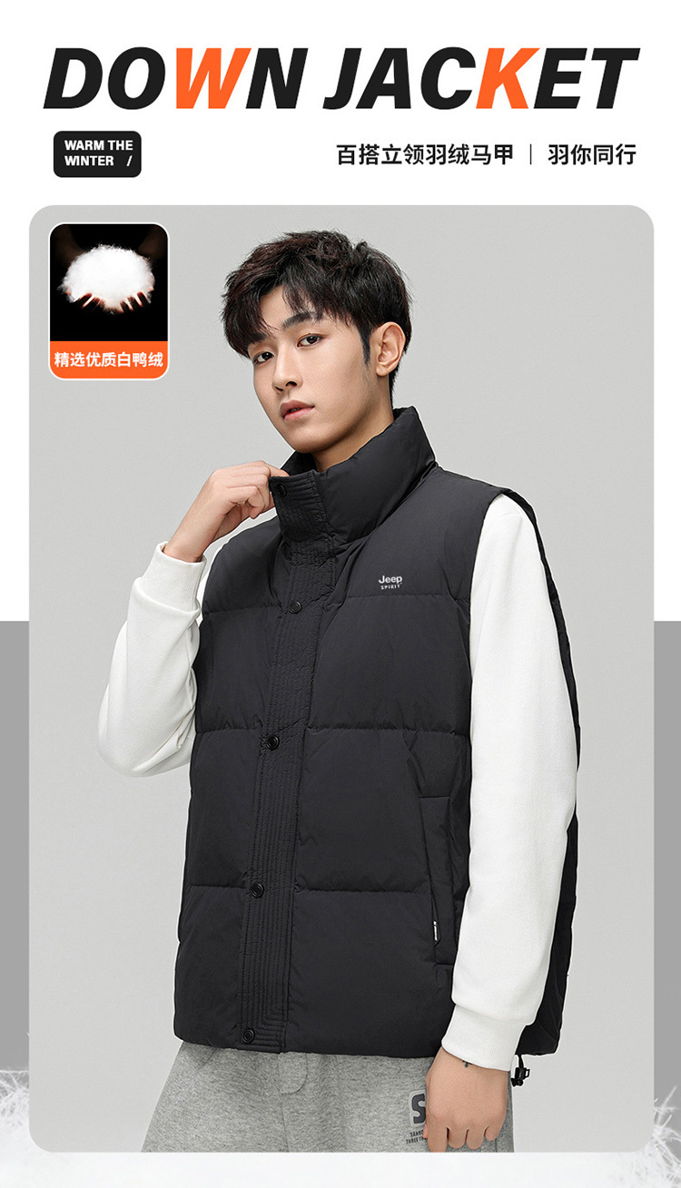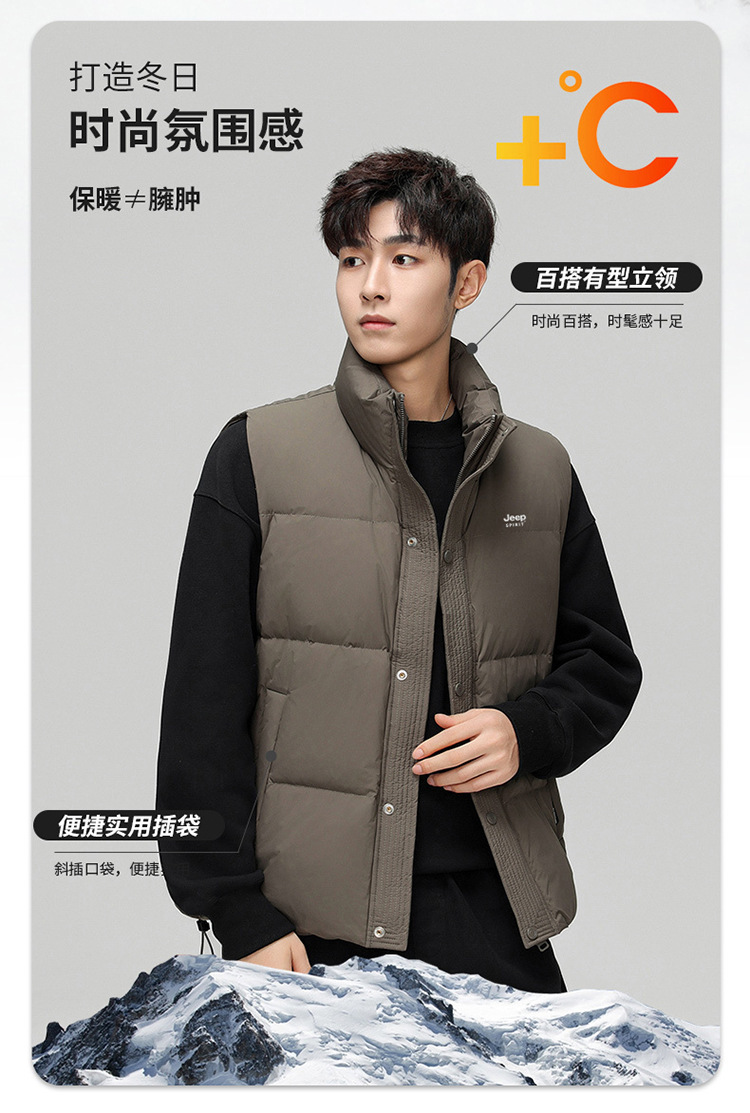 JEEP SPIRIT Winter Down Vest 남자 민소매 칼라 Ware 국경 간 야외 스포츠 따뜻한 조끼 남자 조끼스토어 가기
