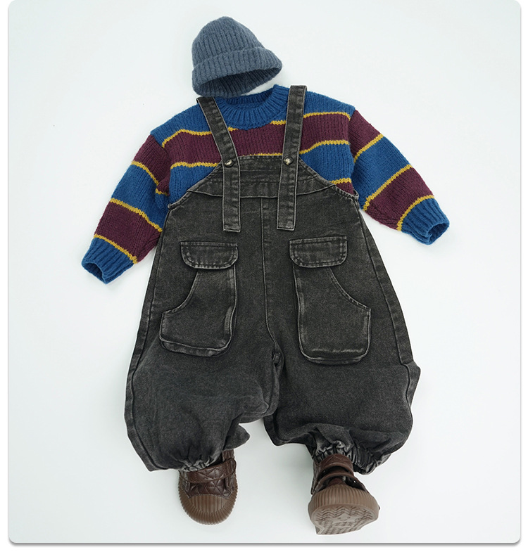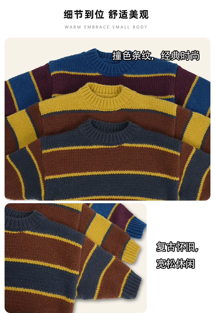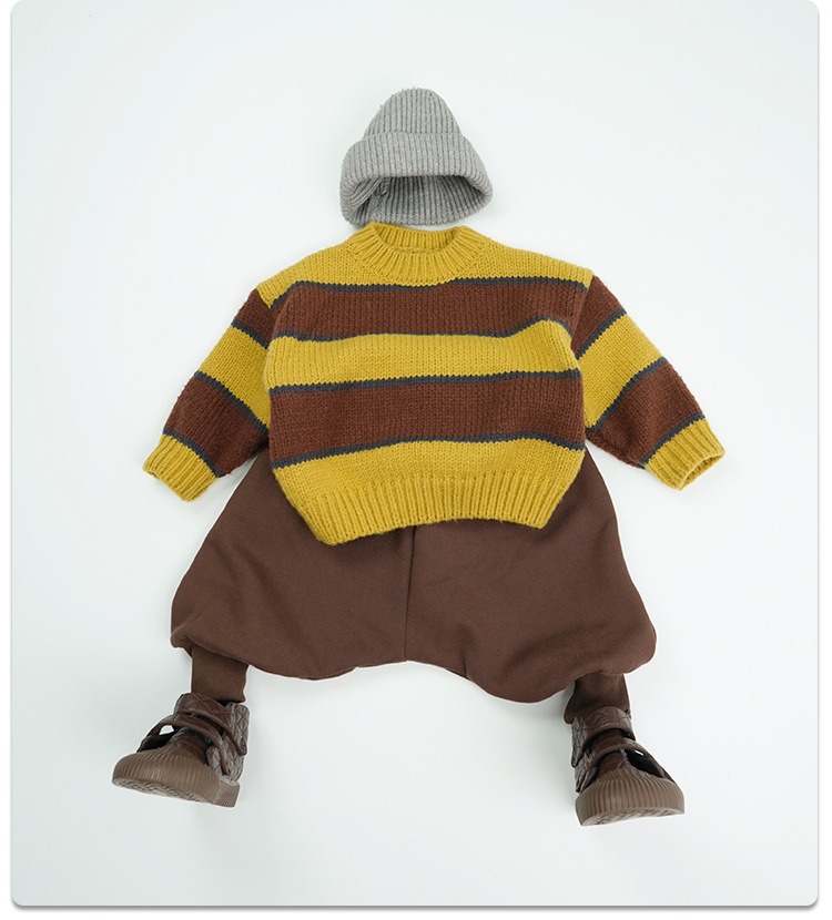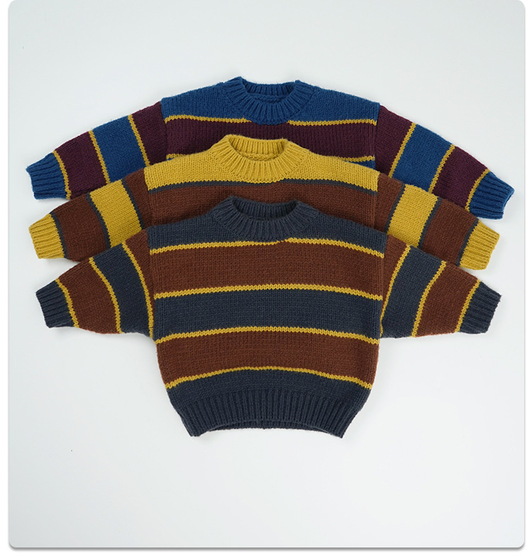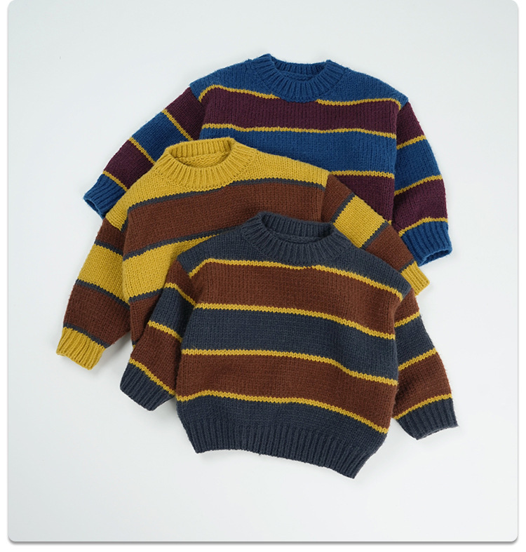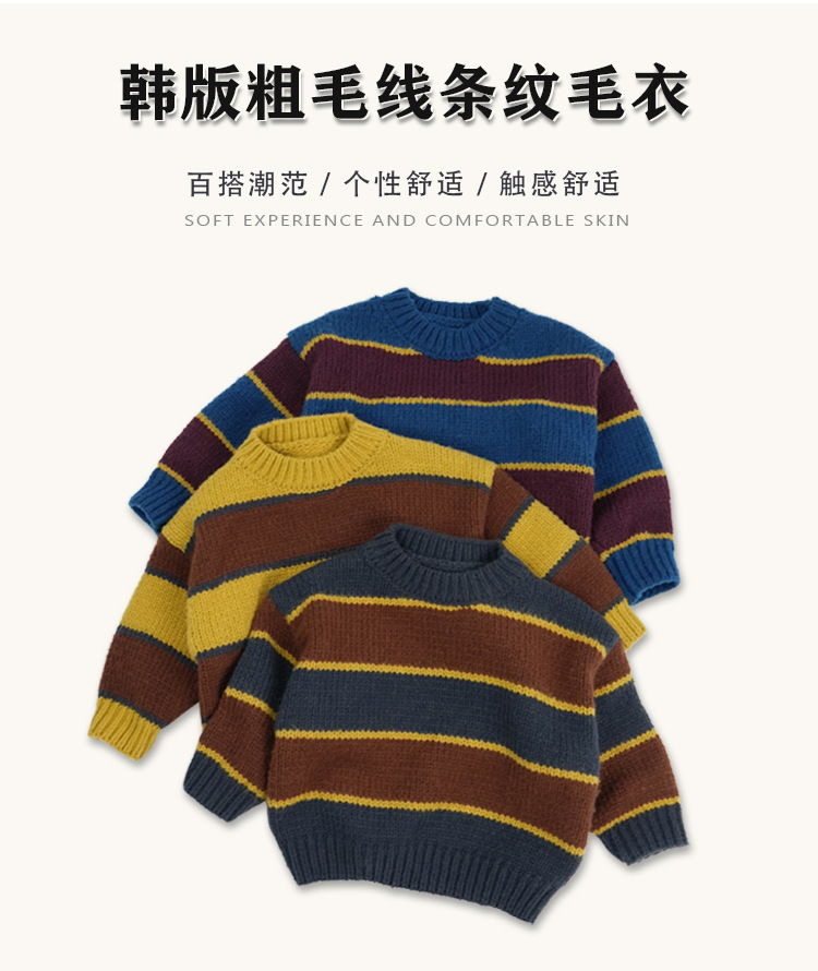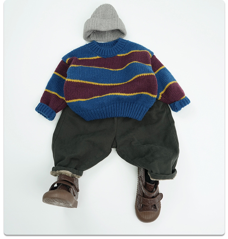 겨울 한국 스타일 어린이 따뜻한 줄무늬 스웨터 소년과 소녀 클래식 소프트 왁스 두꺼운 니트 스웨터 베이비 모리 스타일 유행 스타일