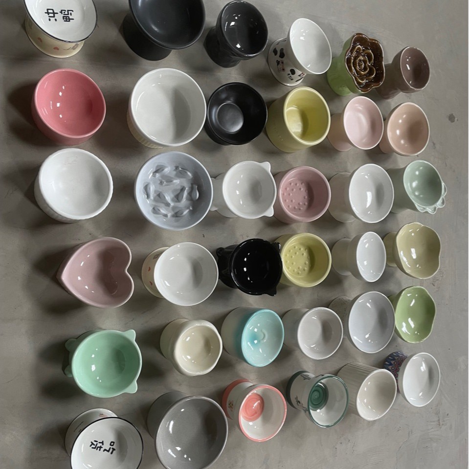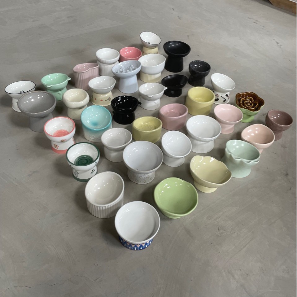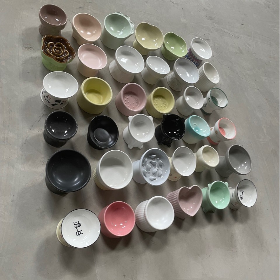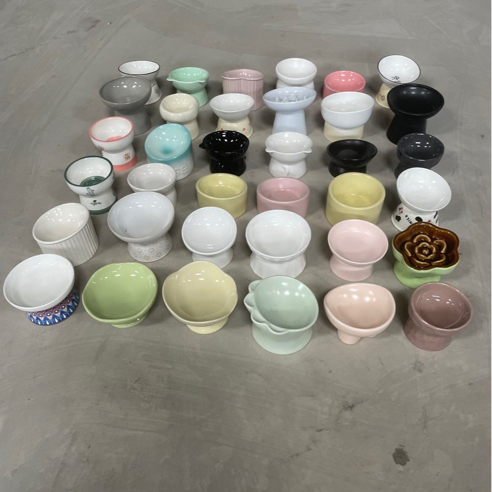 키가 큰 세라믹 고양이 그릇, 만화 컬러 유약 애완 동물 그릇, 목 보호대, 경사진 입구 고양이 먹이 그릇, 고양이 식기, 애완 동물 세라믹 그릇스토어 가기