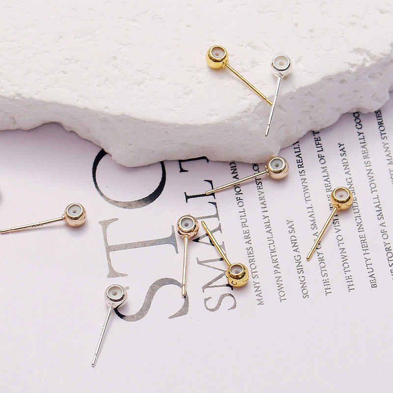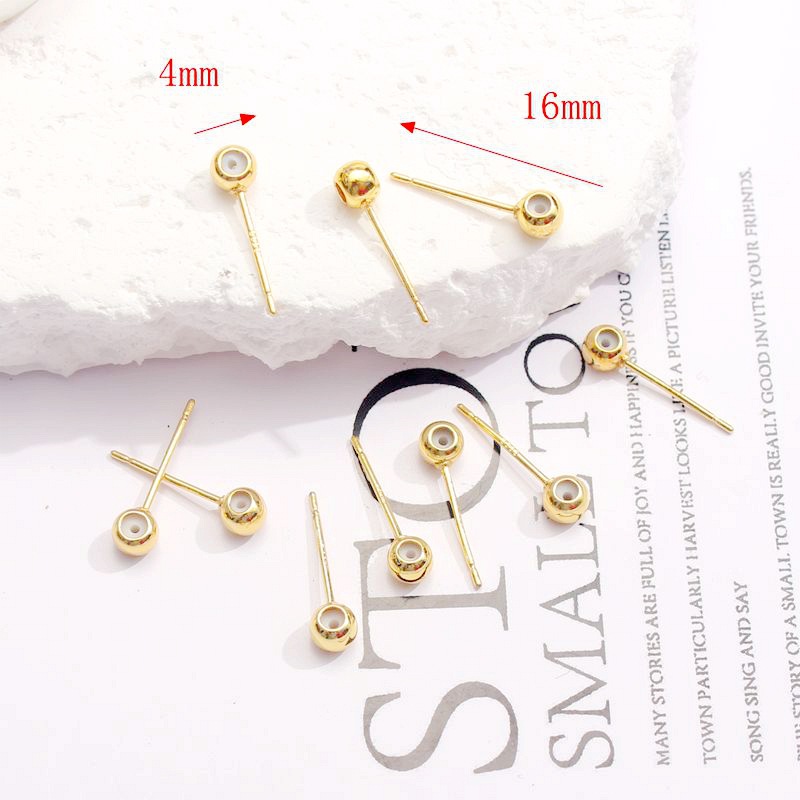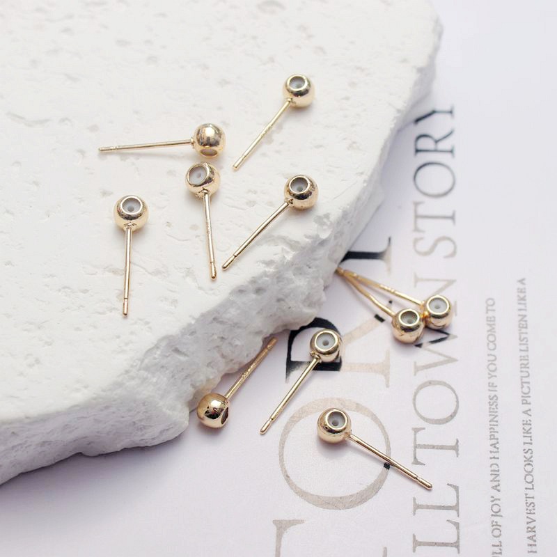 14K浅金色18K真金色胶珠耳针硅胶调节耳钉自制diy手工耳饰品配件