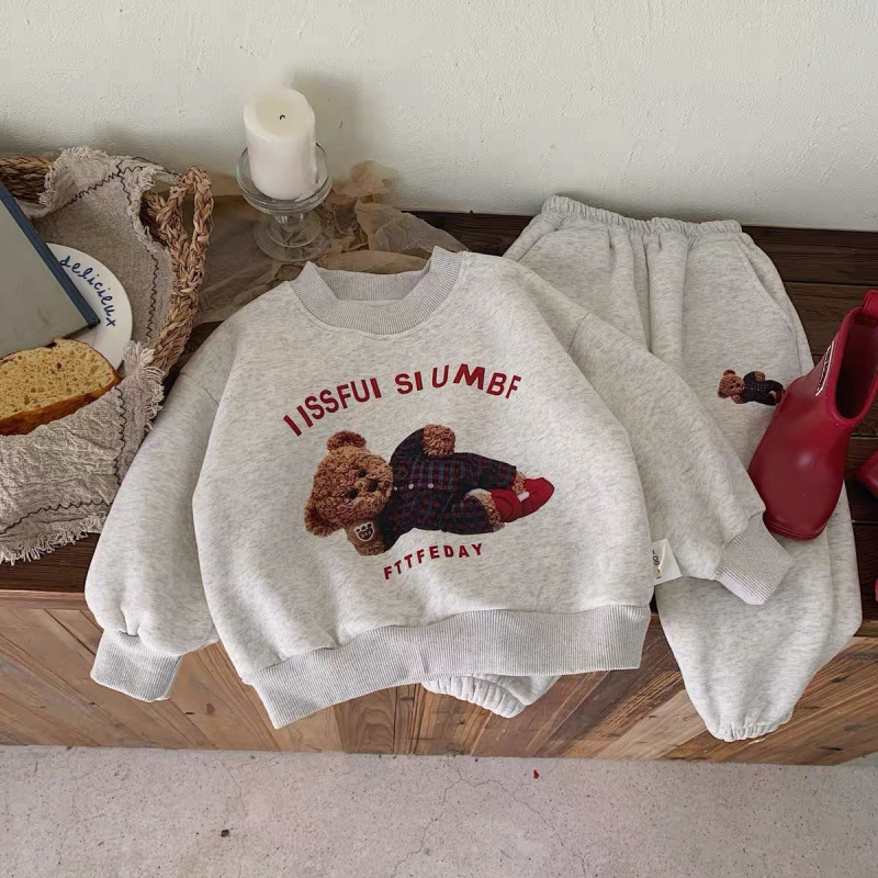 소년 소녀 기모 가을과 겨울 어린이 아기 땀 바지 투피스 세트 트렌디를위한 새로운 스타일 세트스토어 가기