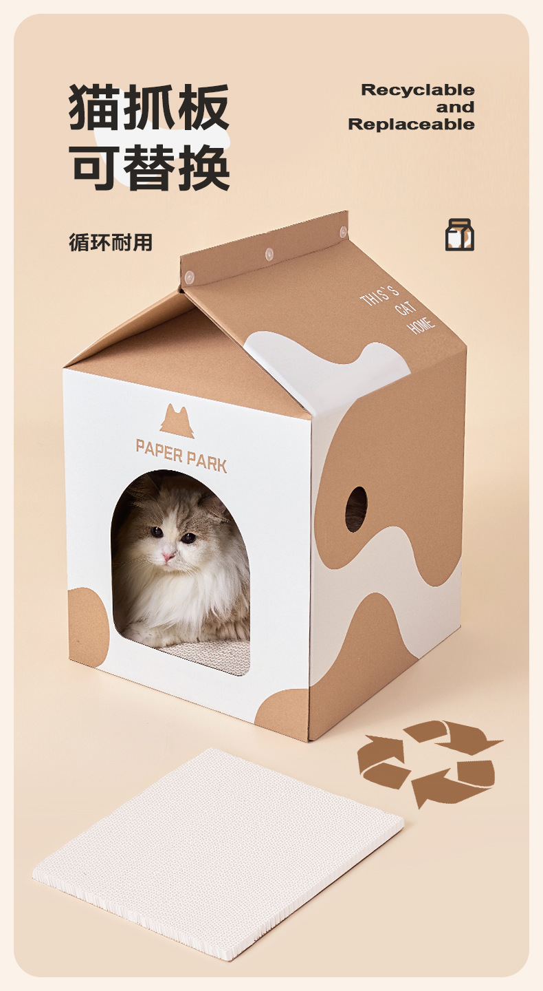 PaperPark 우유 상자 고양이 둥지 가을과 겨울 보안 고양이 스크래치 보드 통합 빨 스크래치 방지 부스러기