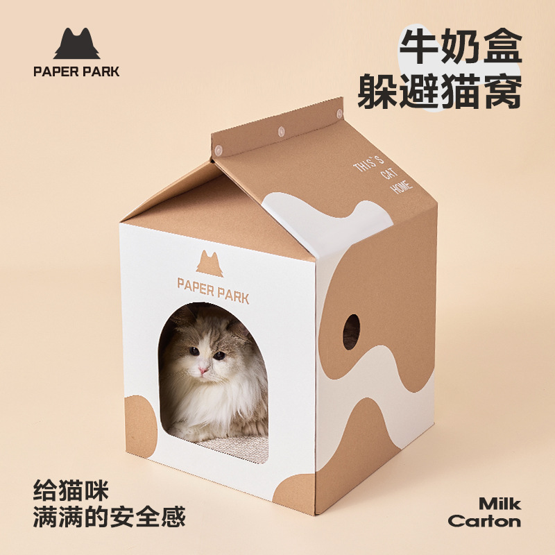PaperPark 우유 상자 고양이 둥지 가을과 겨울 보안 고양이 스크래치 보드 통합 빨 스크래치 방지 부스러기스토어 가기