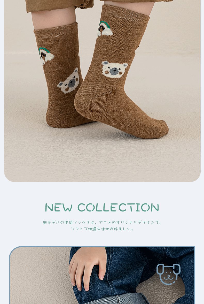 • 작은 글자 곰 매우 따뜻한 겨울 작은 발 보호 양말 5켤레