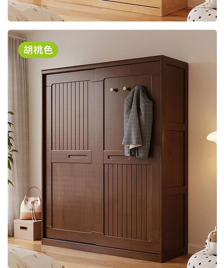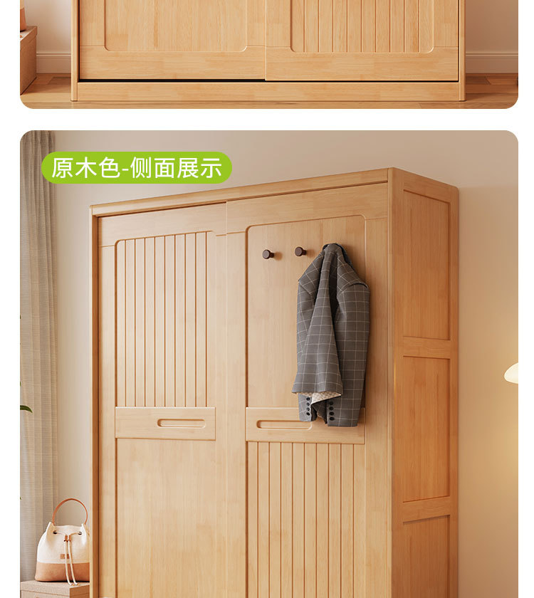모든 단단한 나무 옷장 슬라이딩 도어 및 슬라이딩 도어 북유럽 바닥 서 옷장 가정용 침실 대용량 저장 캐비닛 옷장스토어 가기