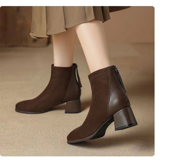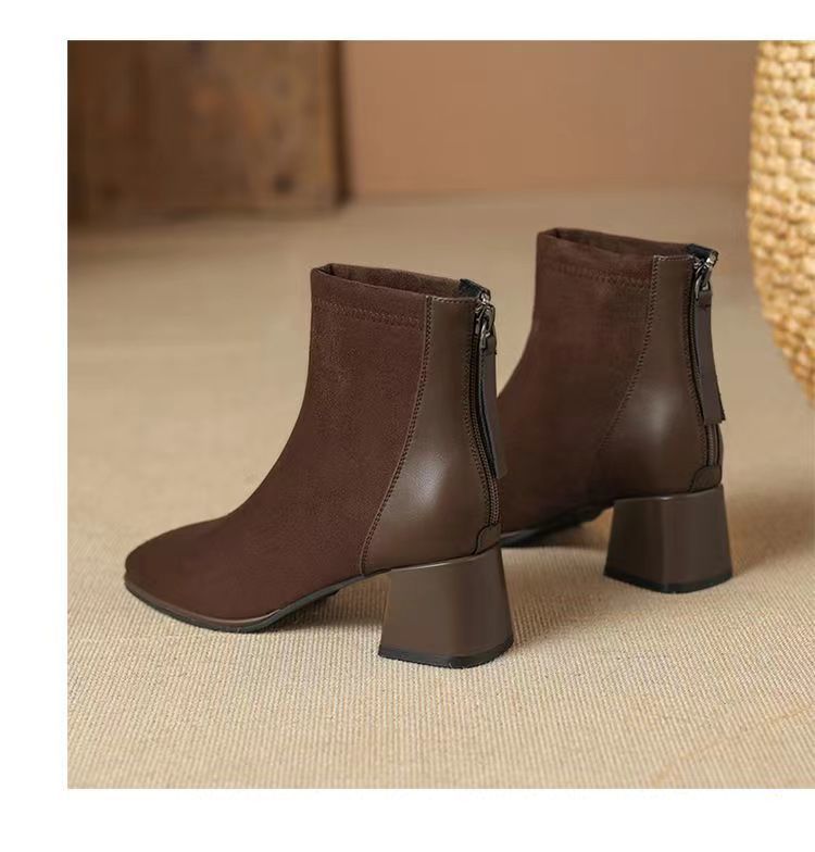 영국 스타일의 부드러운 가죽 마틴 부츠 여성의 2024 가을과 겨울 새로운 프랑스 스타일 짧은 부츠 서양식 올 매치 기모 따뜻한 부츠스토어 가기